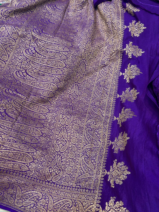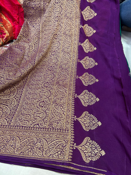 Purple pure crepe Banarasi saree
