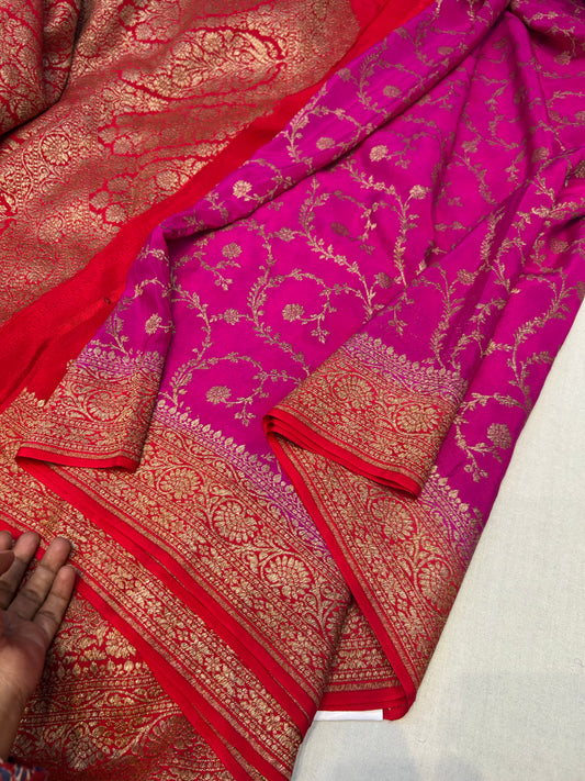 Pink with red pure crepe Banarasi saree