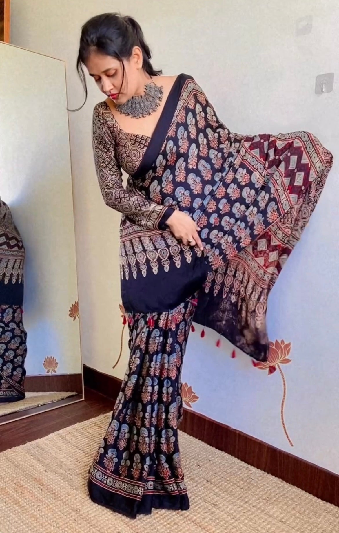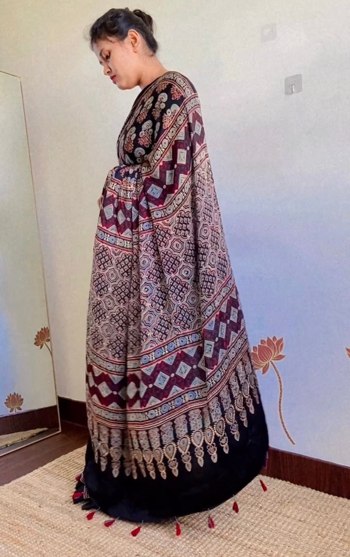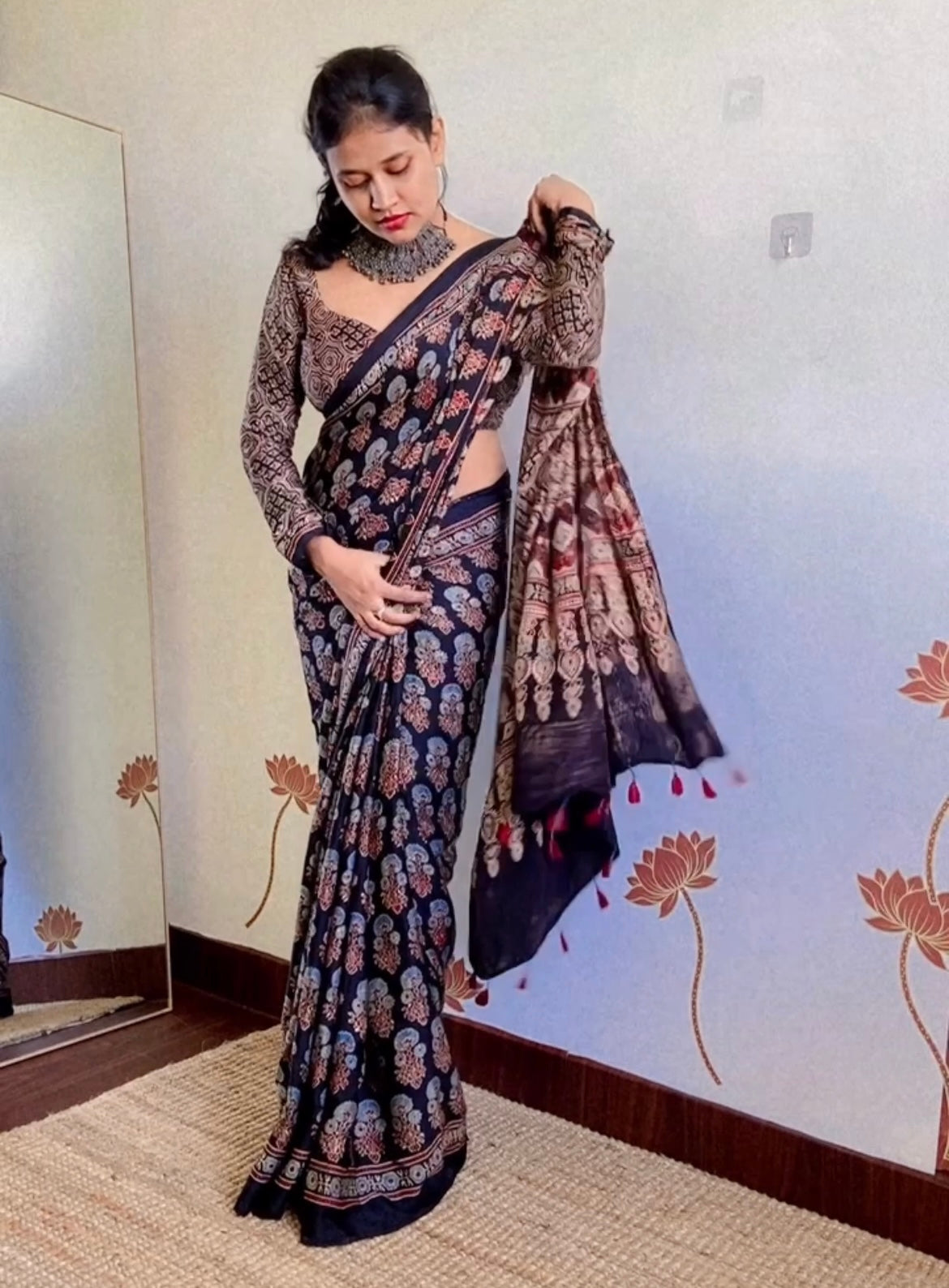 3. It's a hand block print, so, there will be some spill of dye in between sarees, which is not considered as defective or damage.