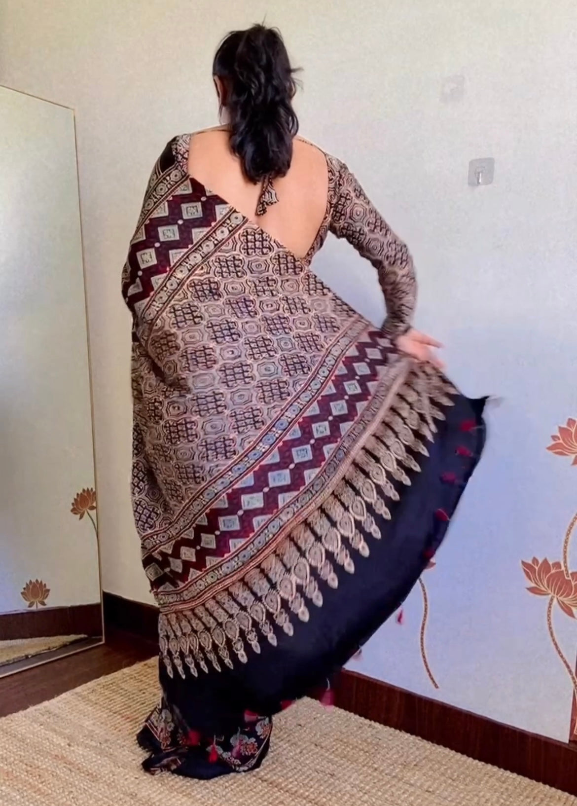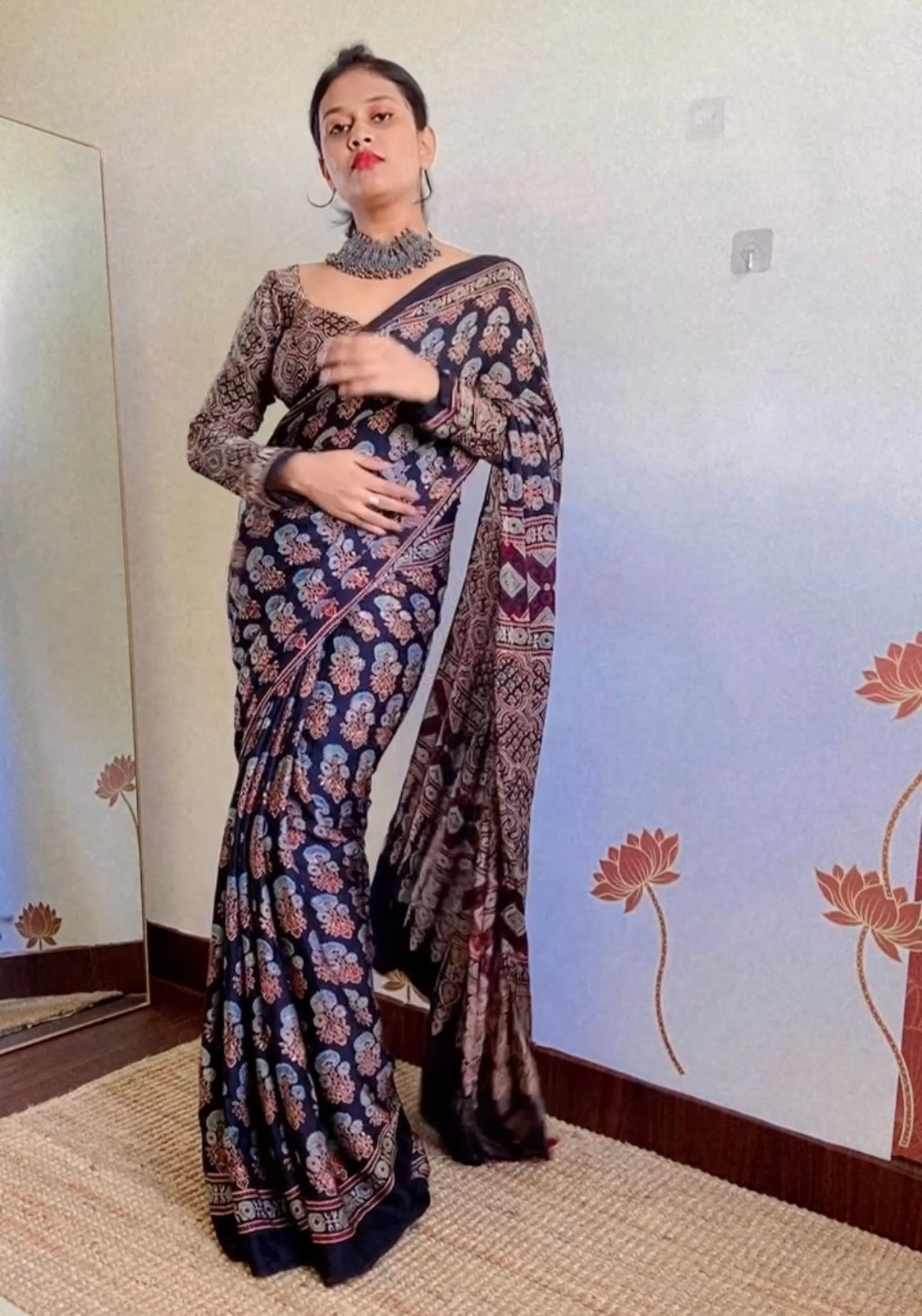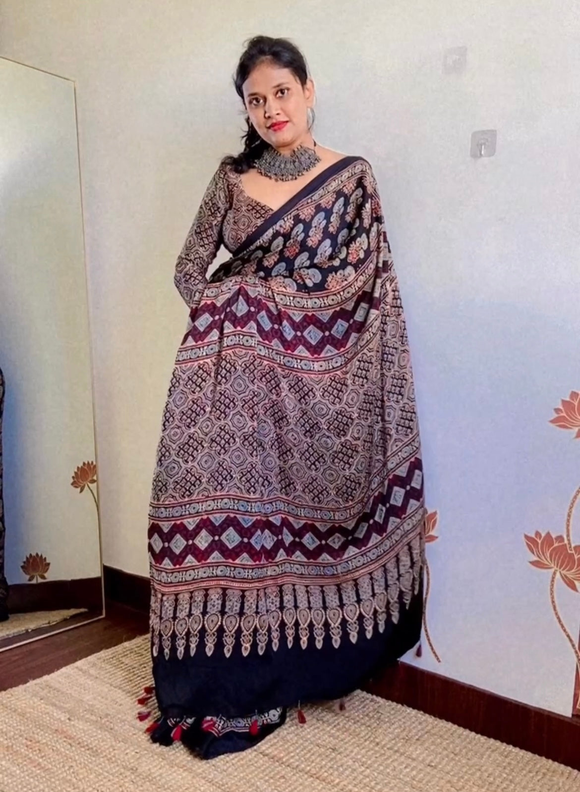 3. It's a hand block print, so, there will be some spill of dye in between sarees, which is not considered as defective or damage.