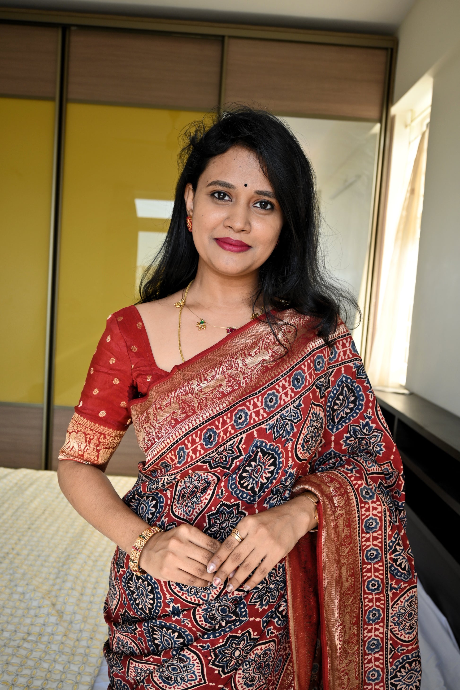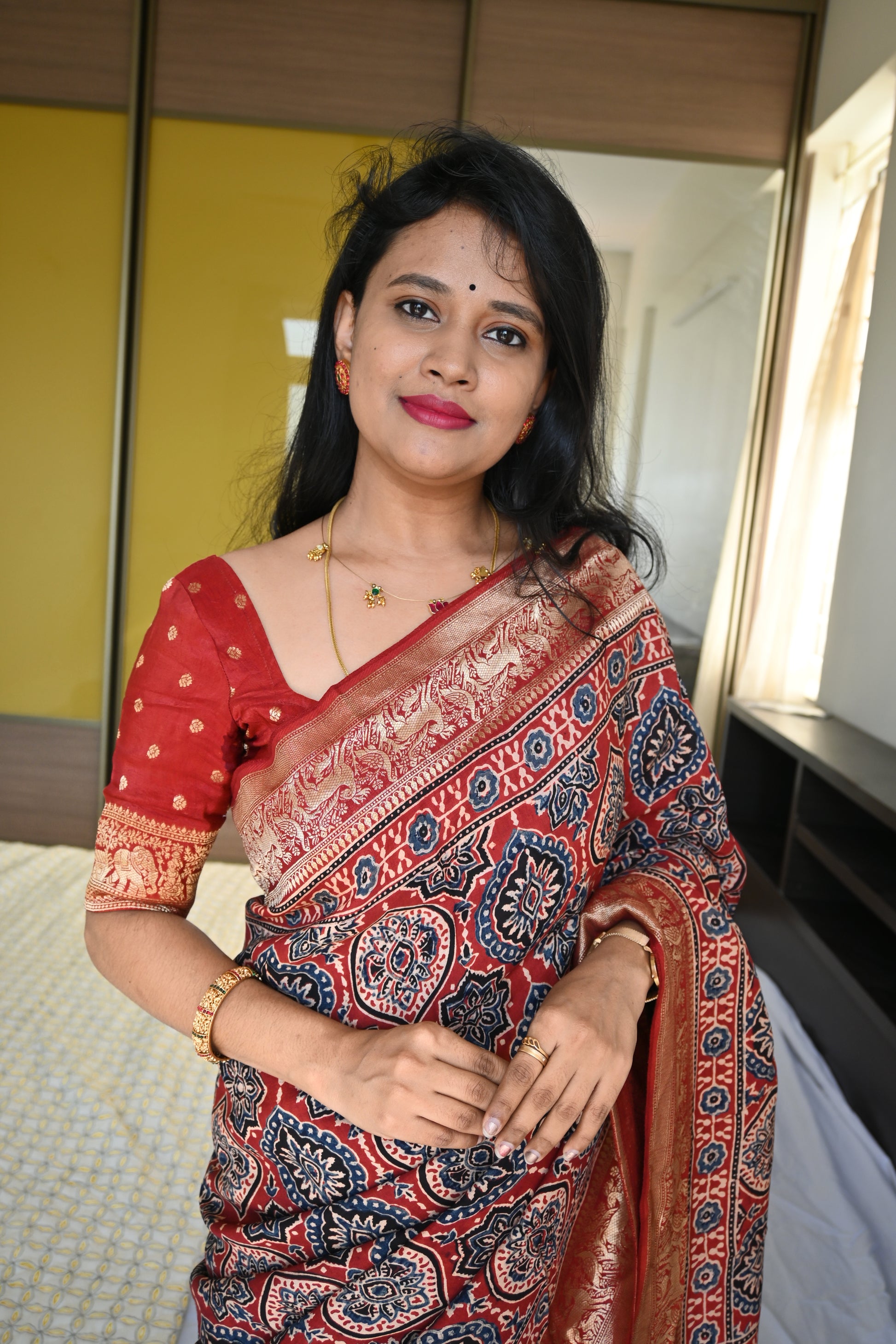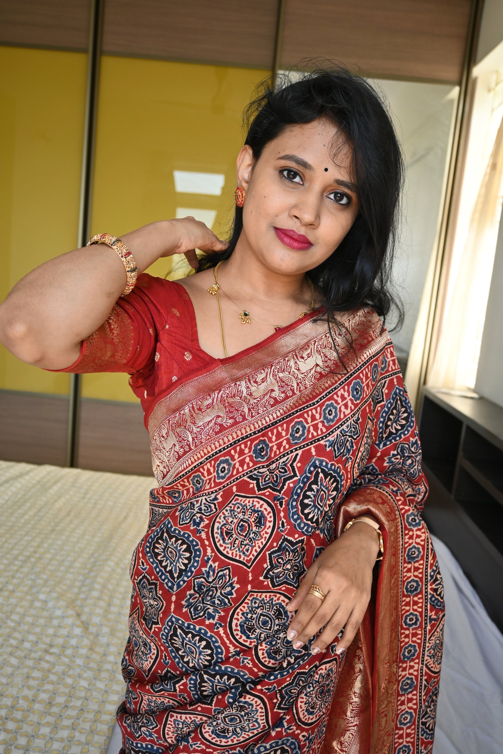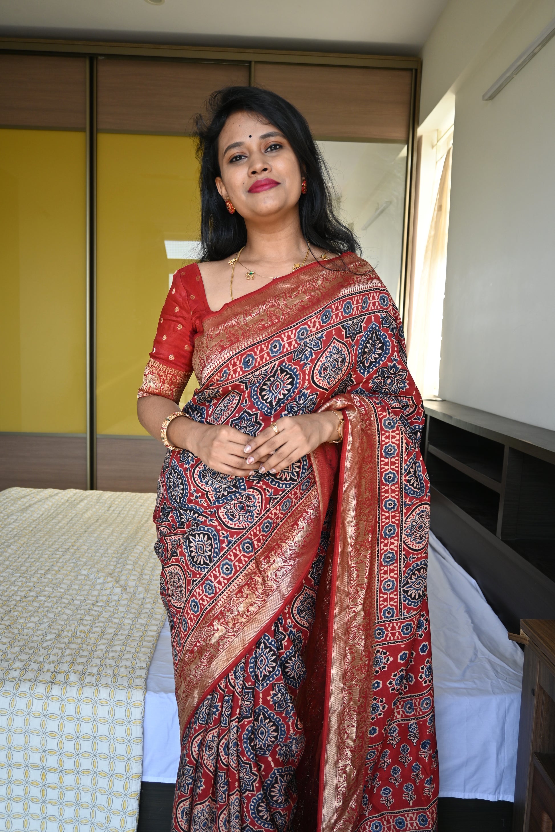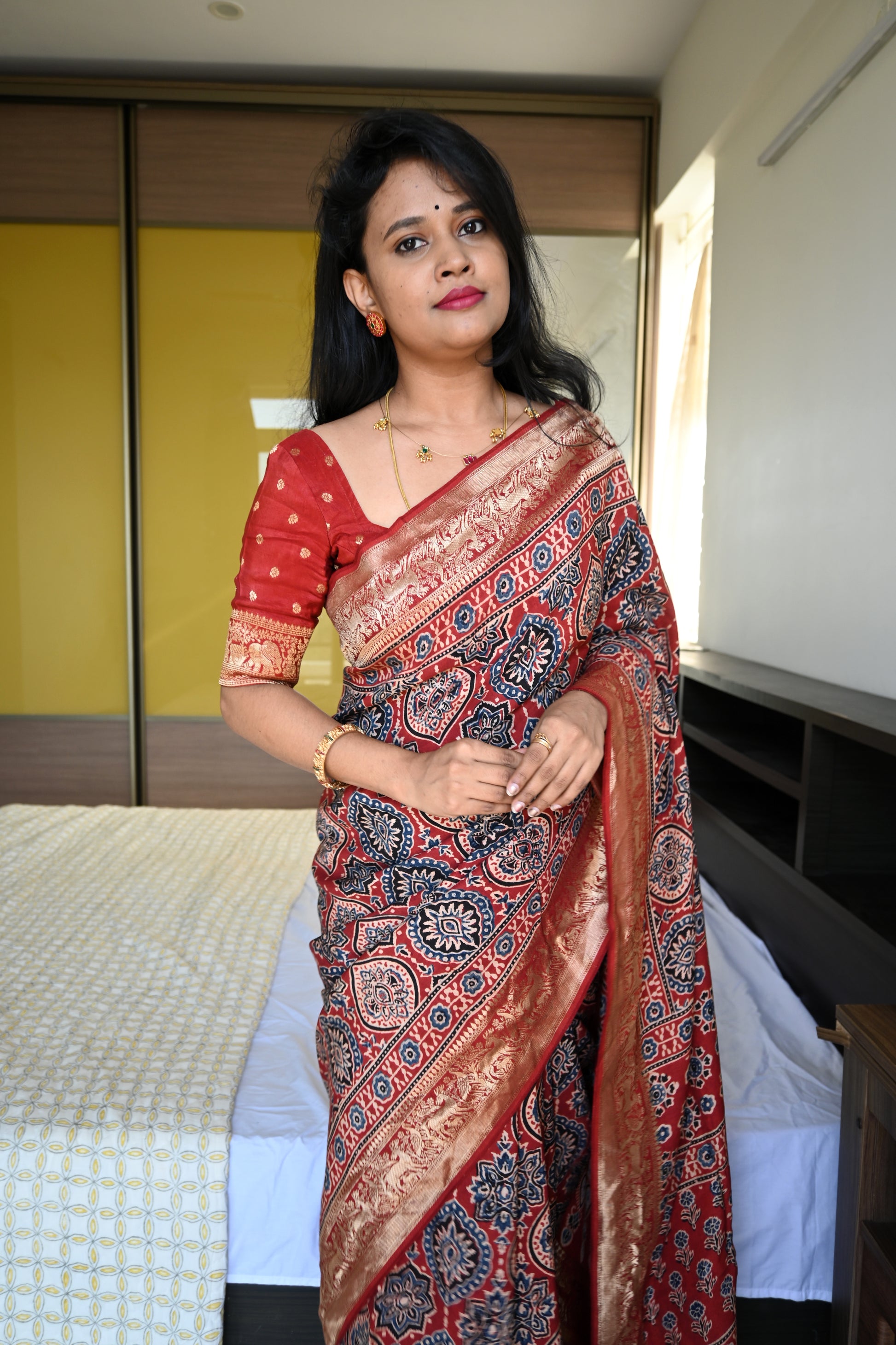 Premium Ajrakh Dola Silk Saree – Naturally Dyed & Handcrafted Elegance