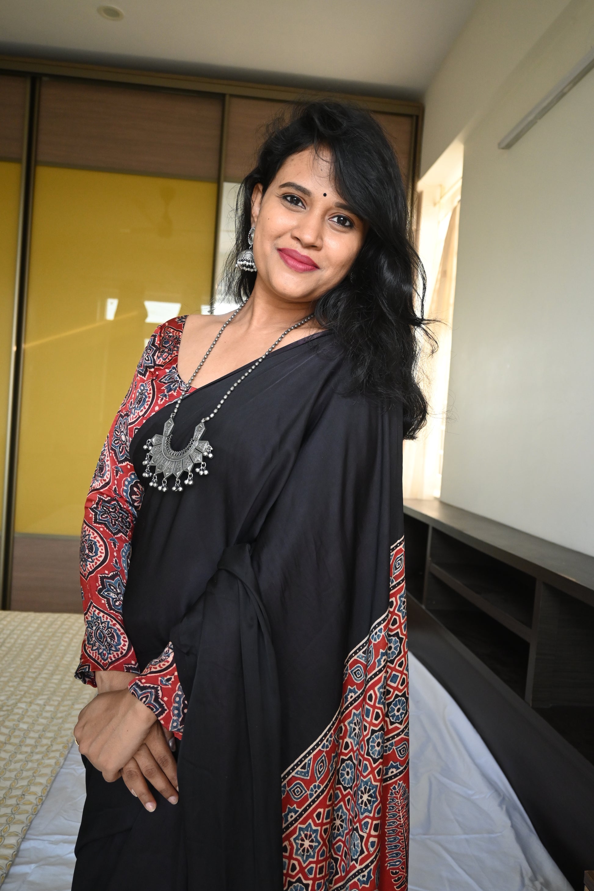 Ajrakh modal silk saree
