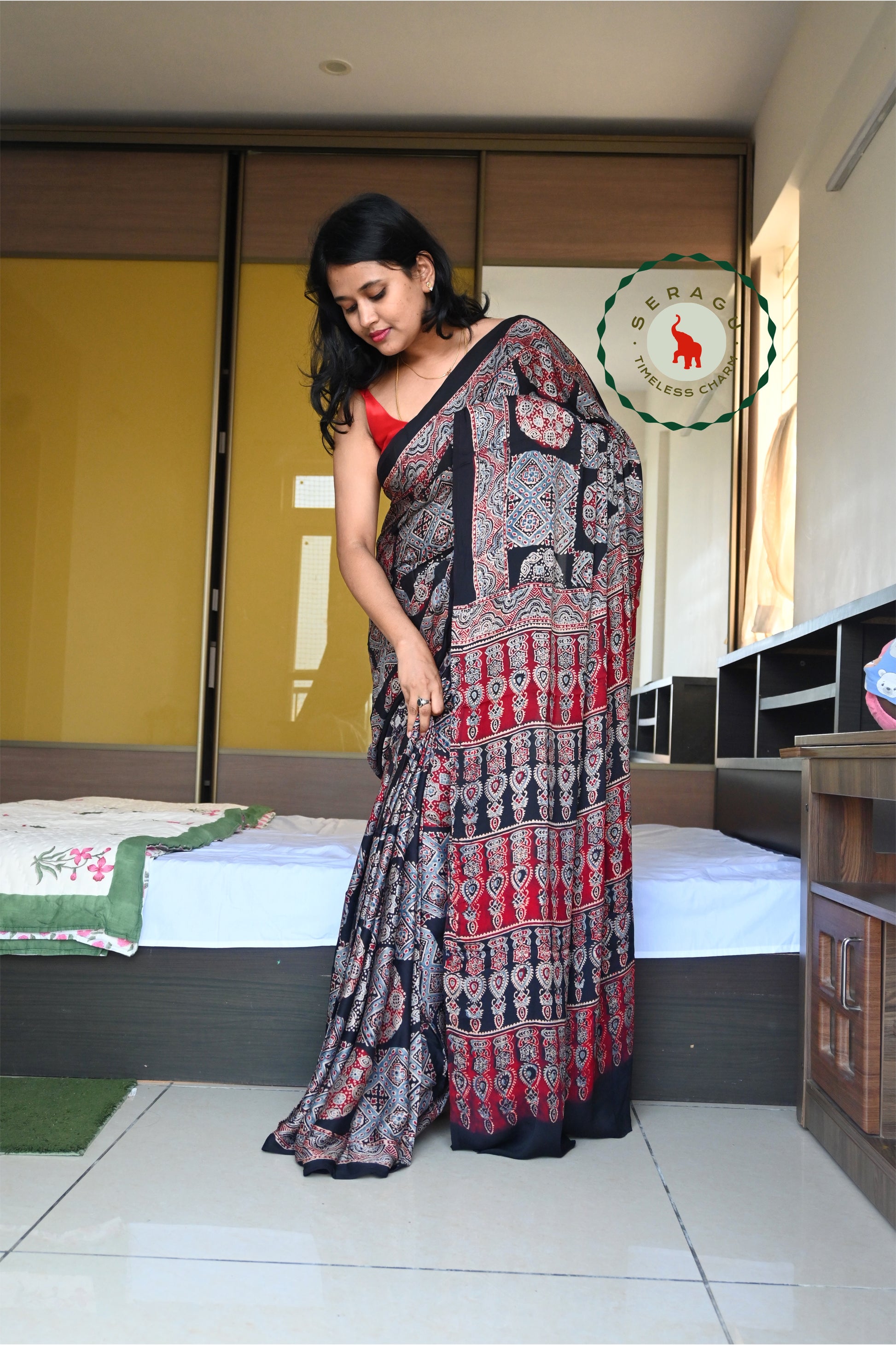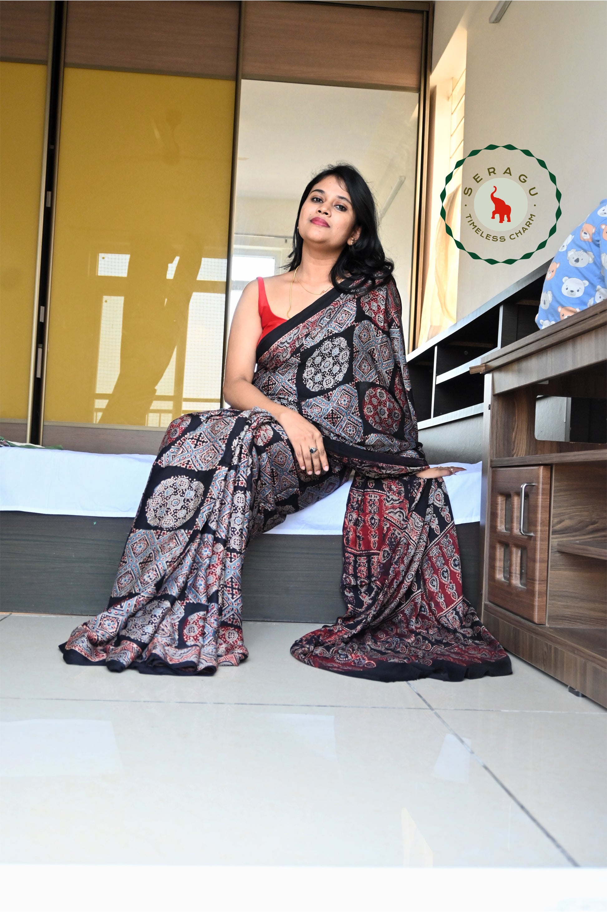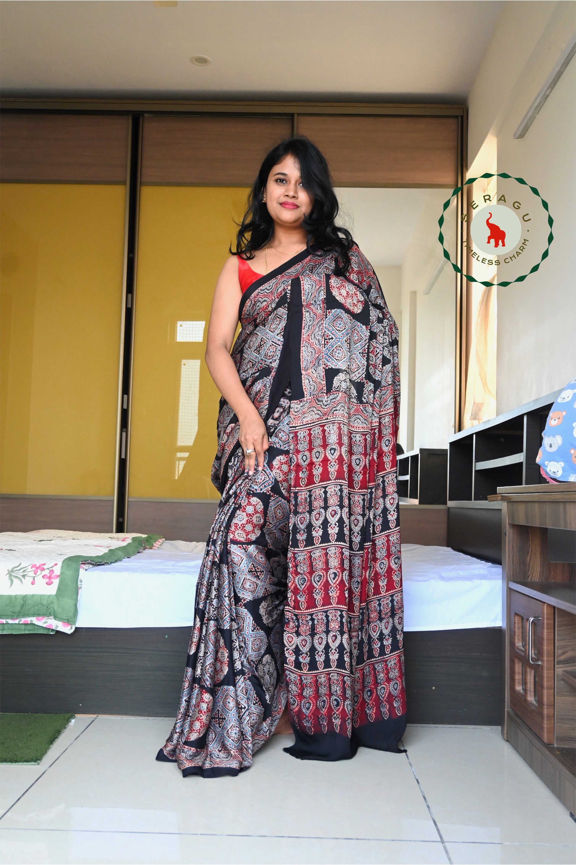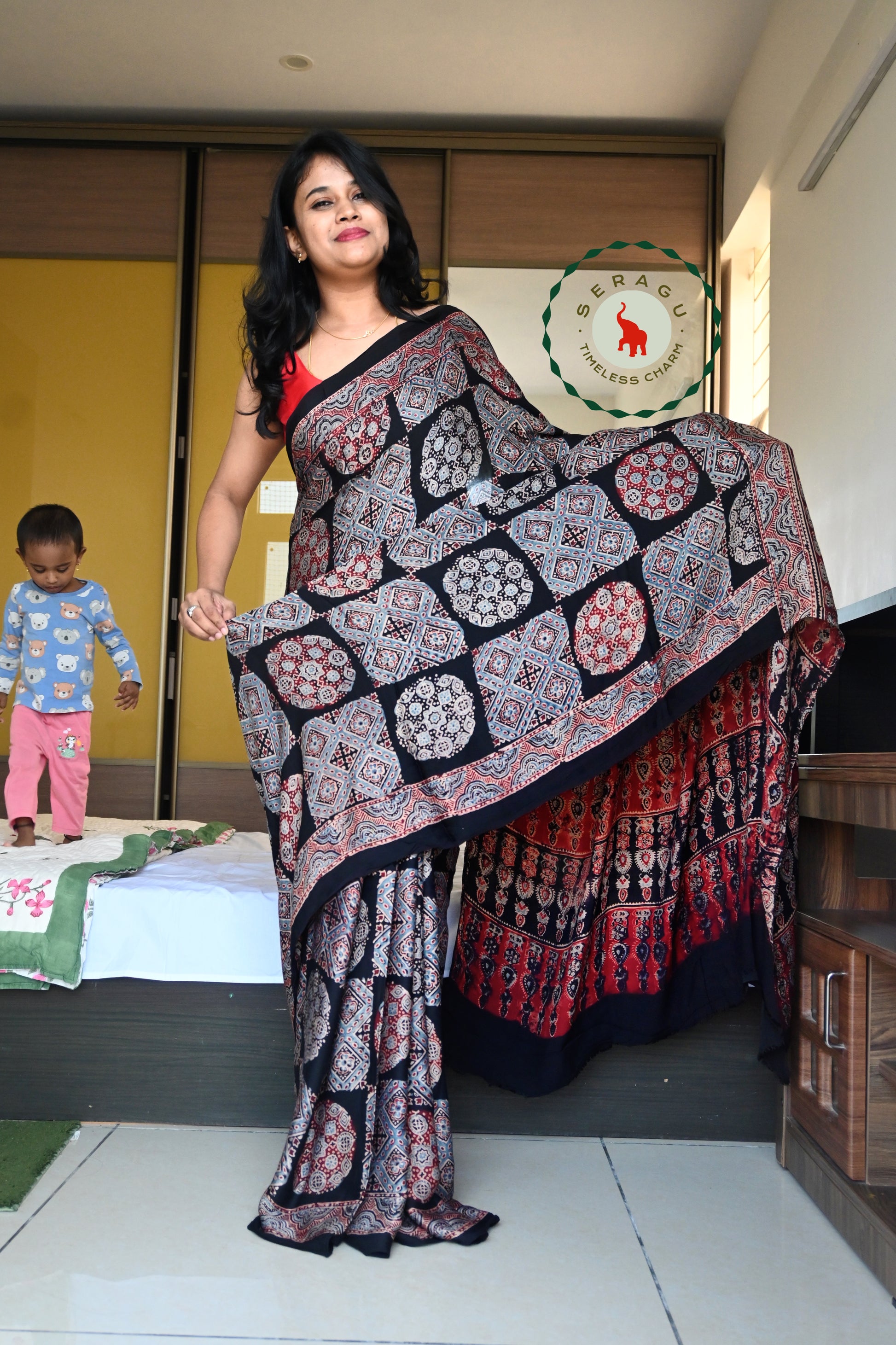 3. It's a hand block print, so, there will be some spill of dye in between sarees, which is not considered as defective or damage.