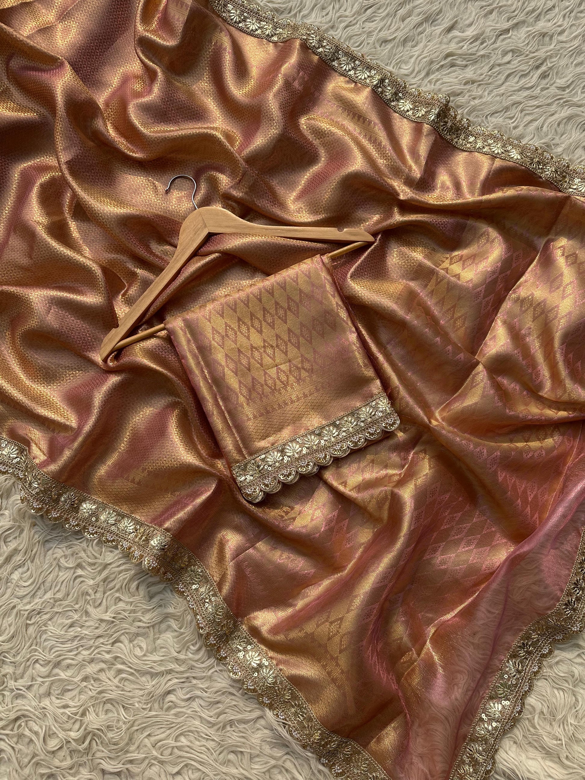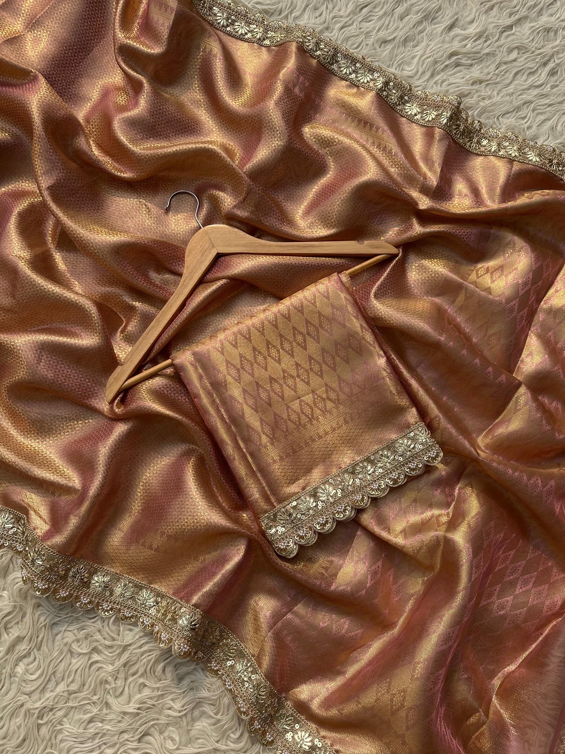 Gold Zari weaving beautiful handwork lace attached border and beautiful brocade body