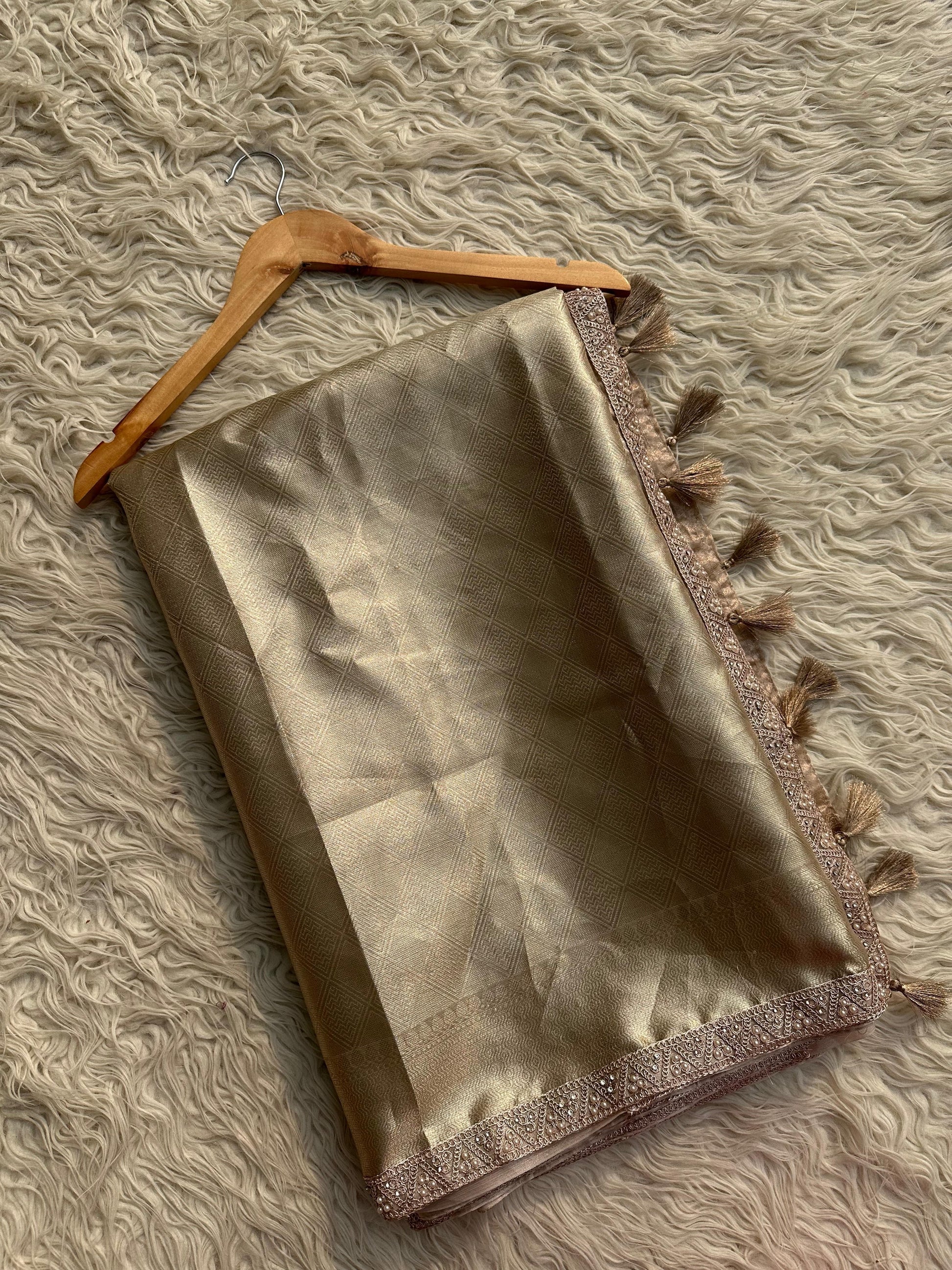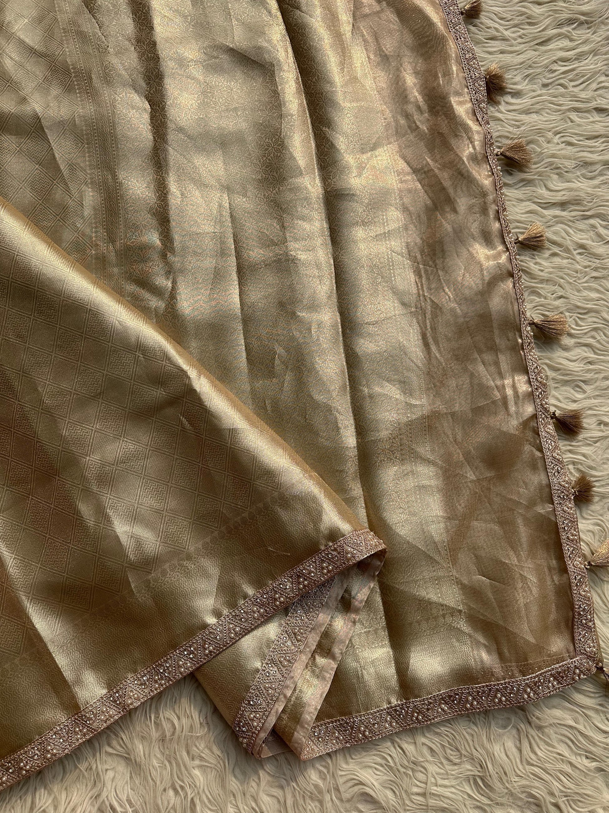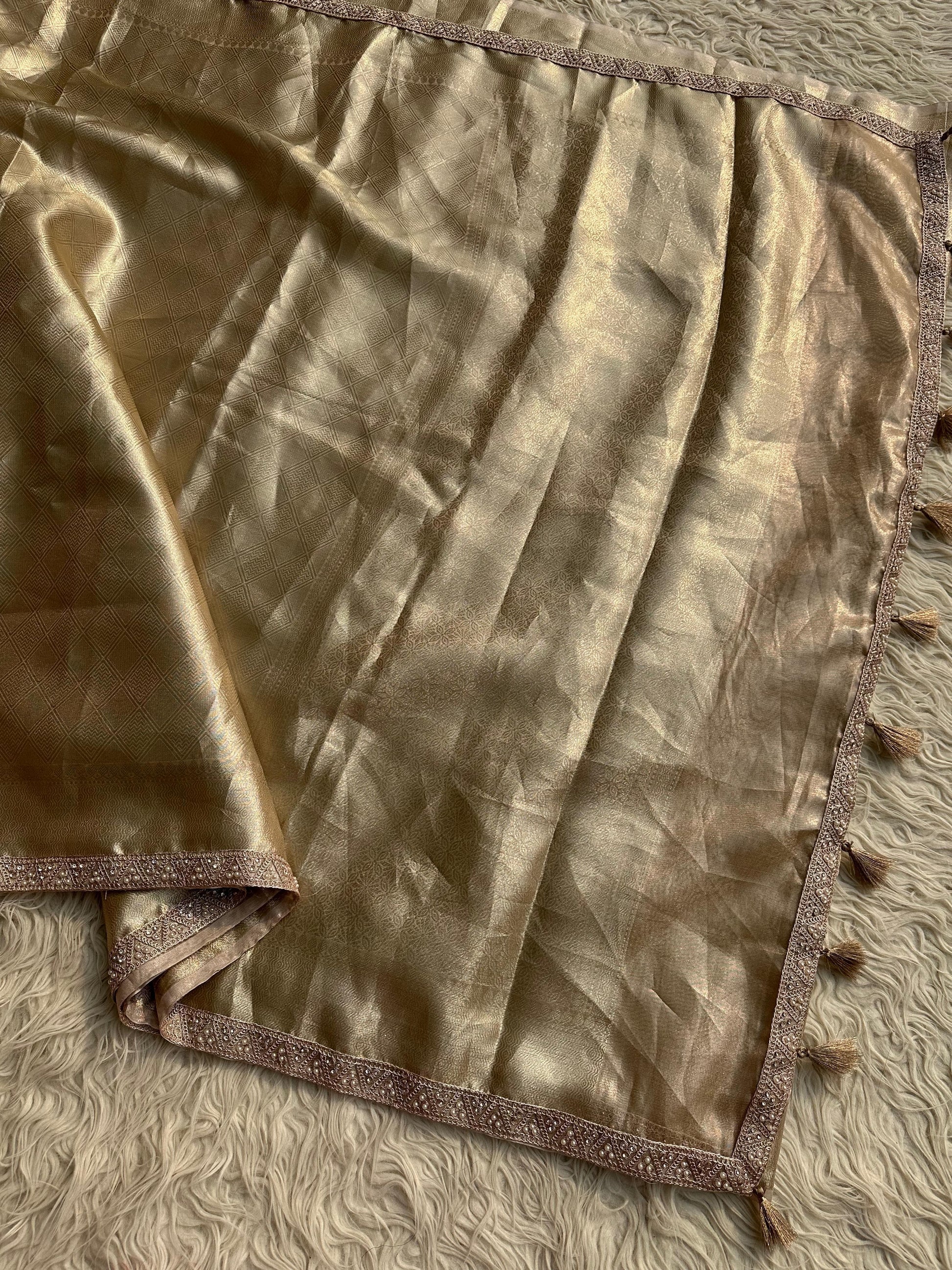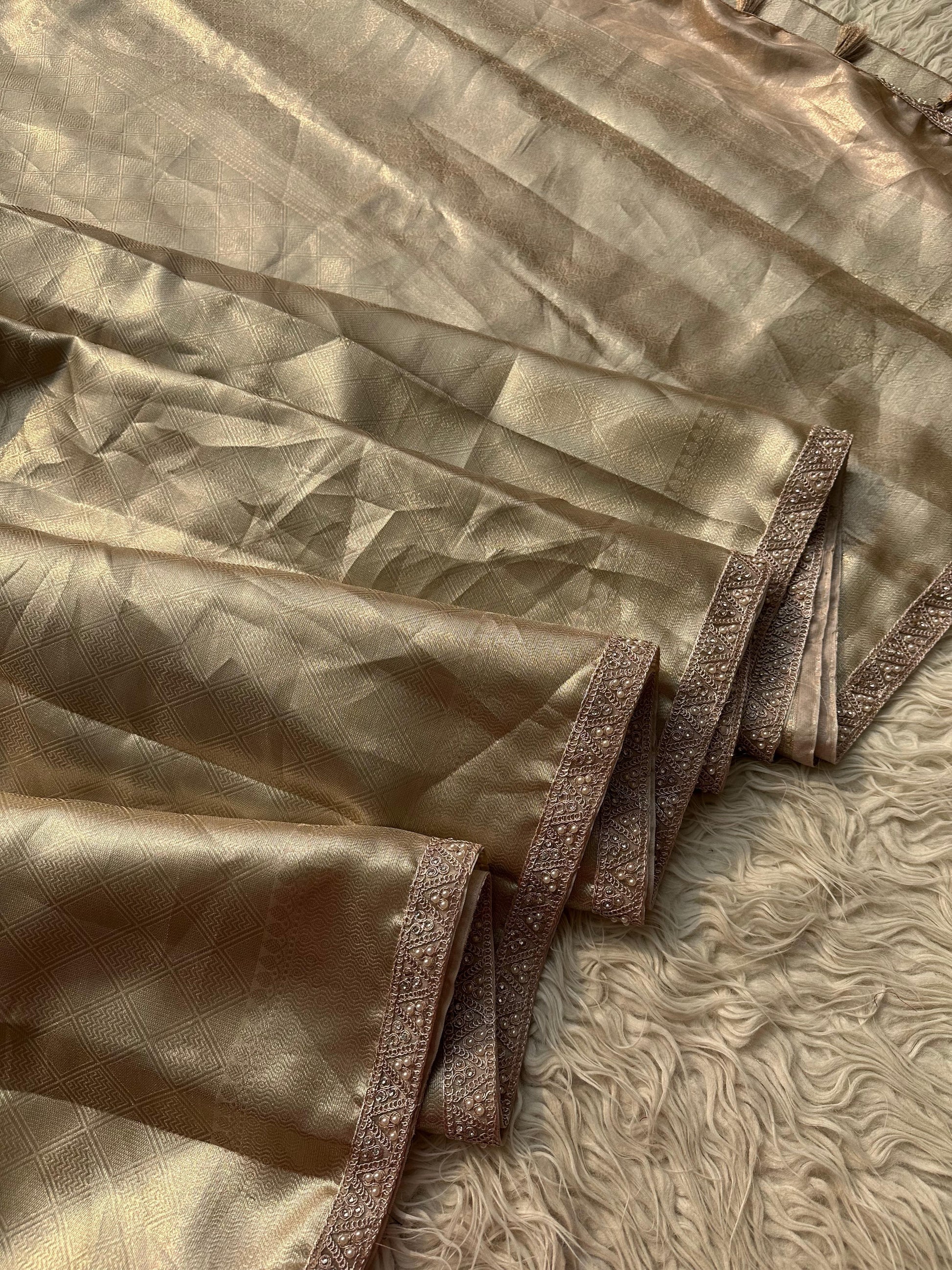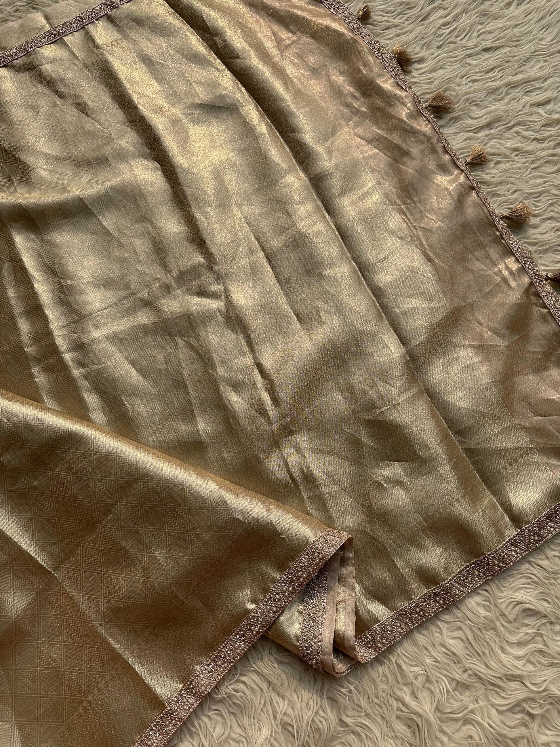 Gold Zari weaving beautiful handwork lace attached border and beautiful brocade body