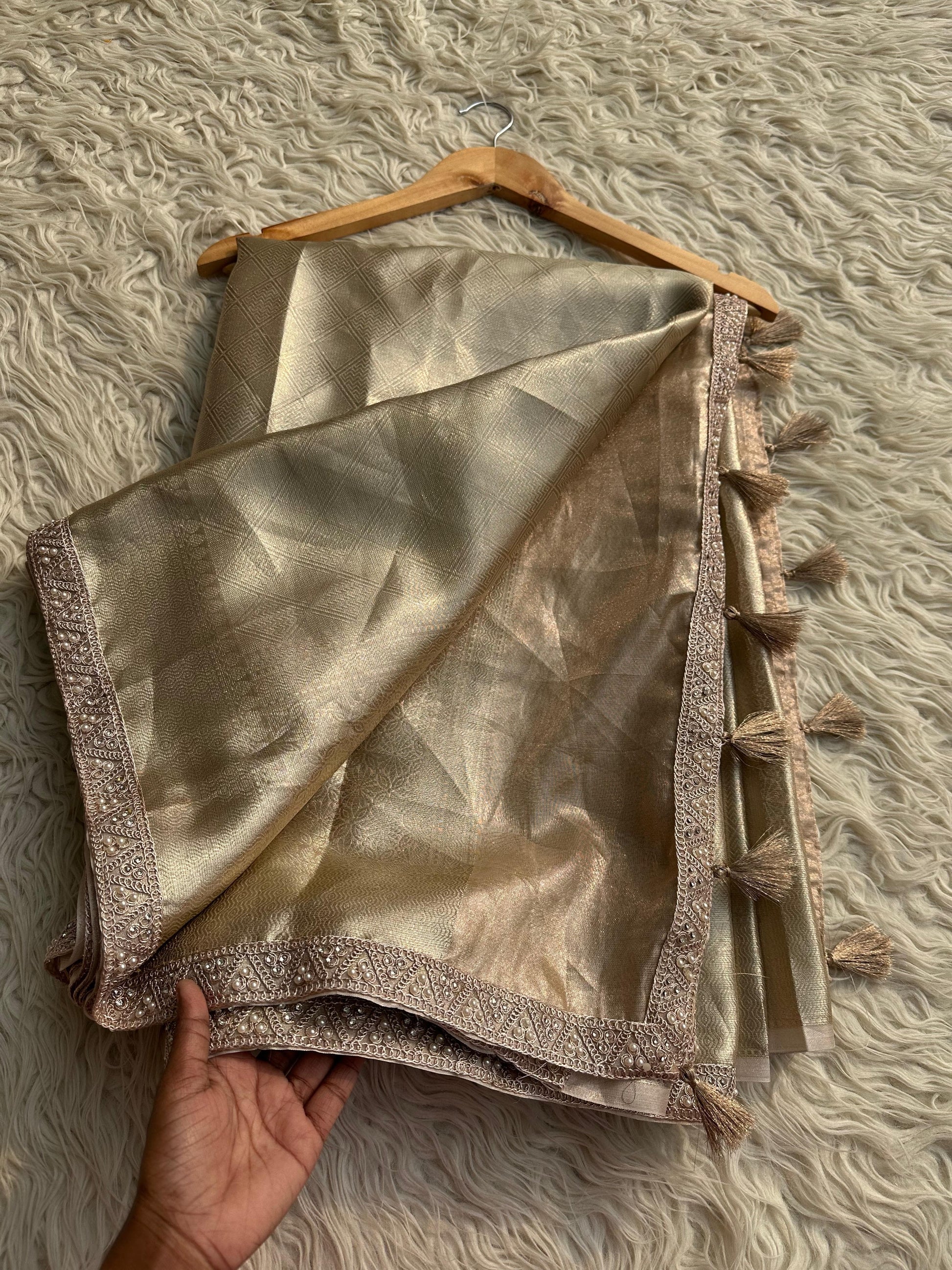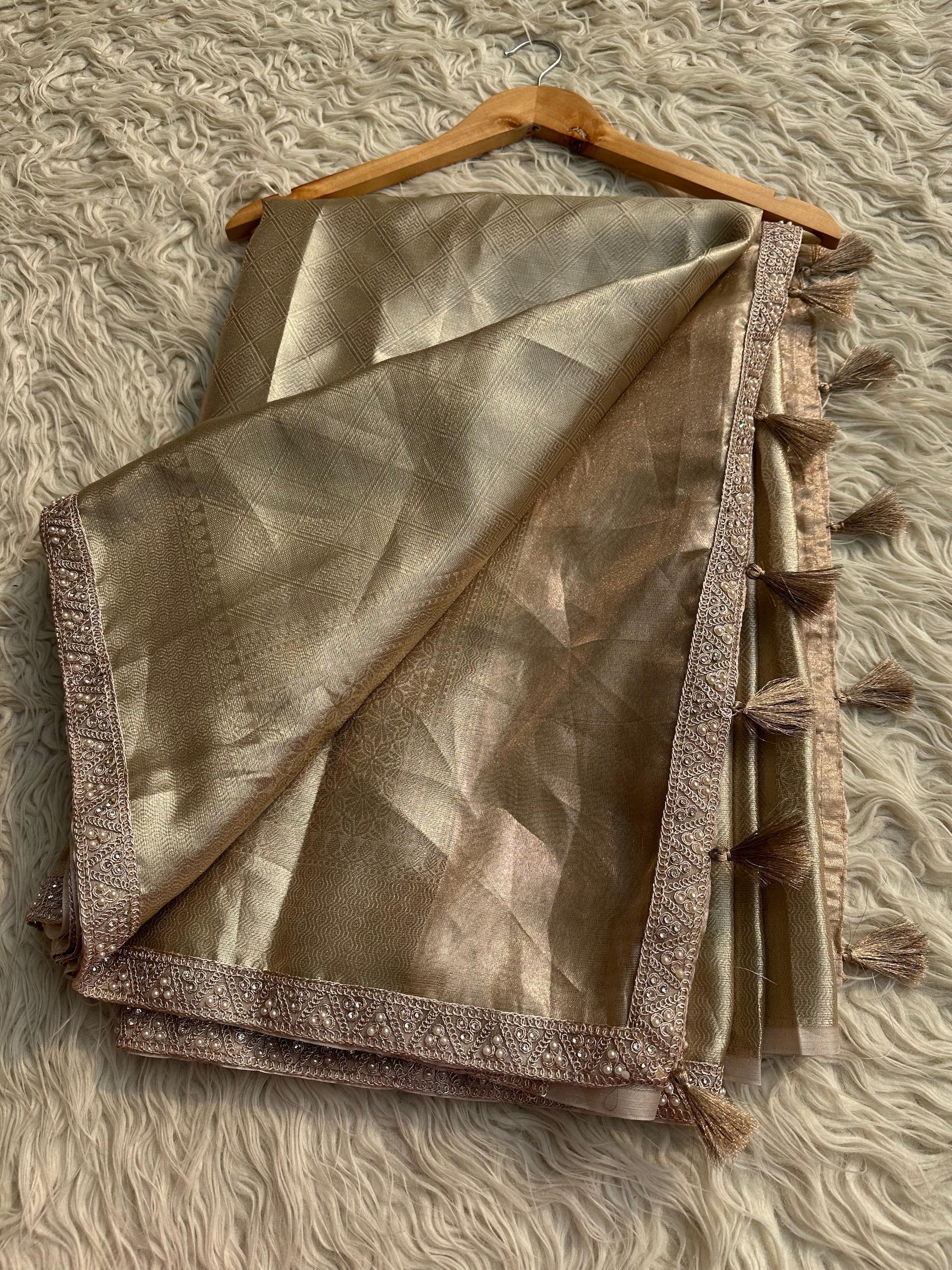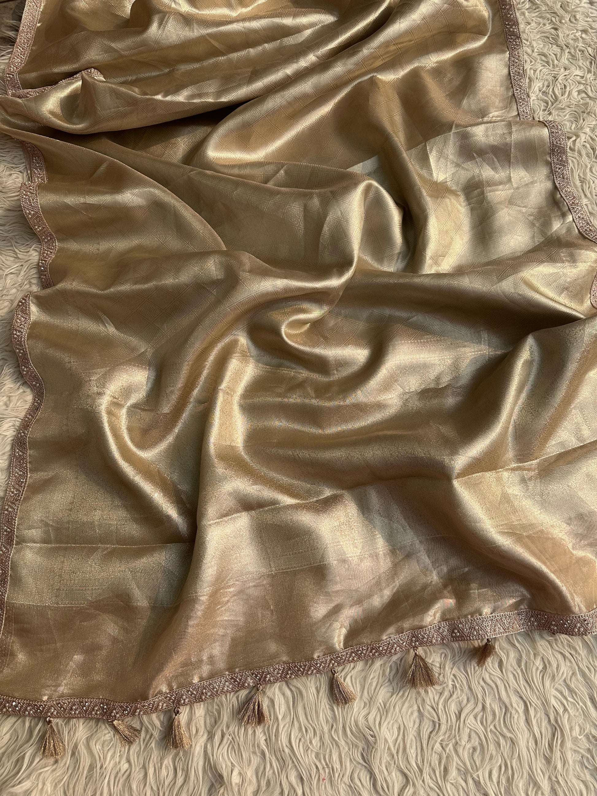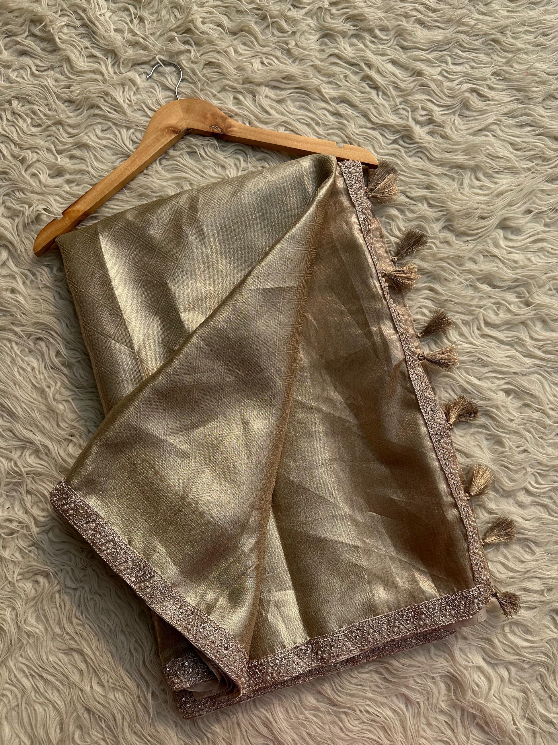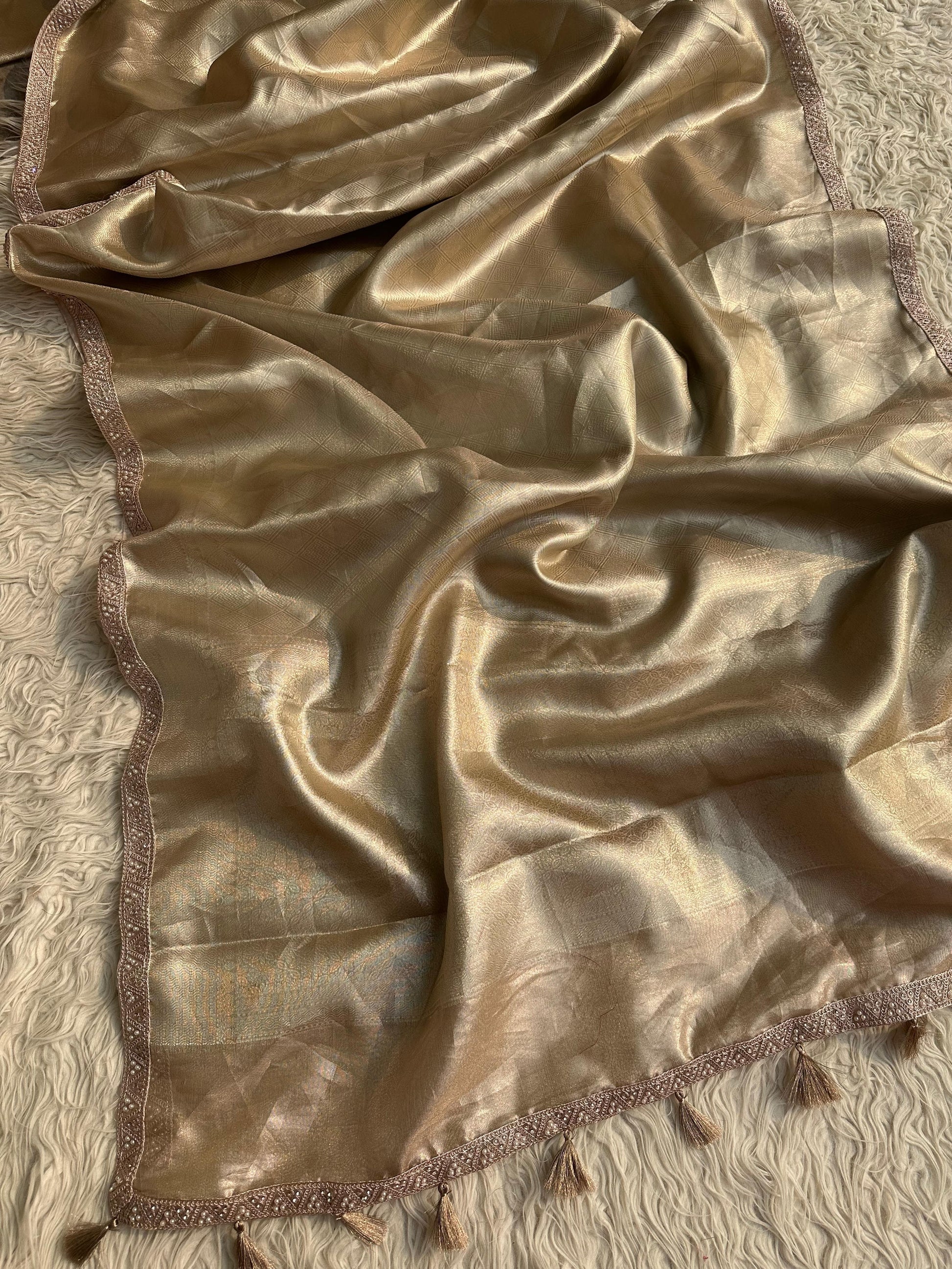 Gold Zari weaving beautiful handwork lace attached border and beautiful brocade body