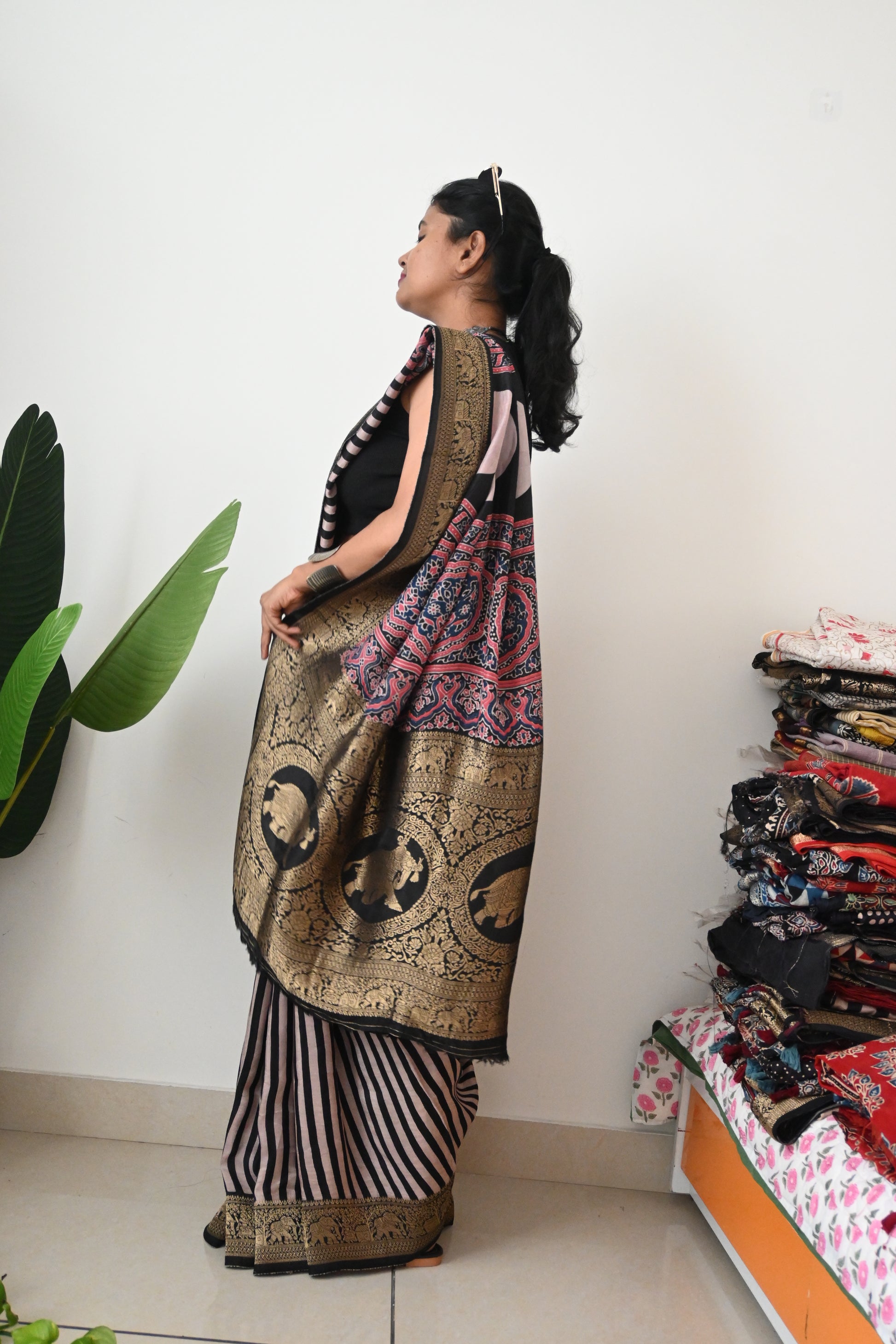 Premium Ajrakh Dola Silk Saree – Naturally Dyed & Handcrafted Elegance