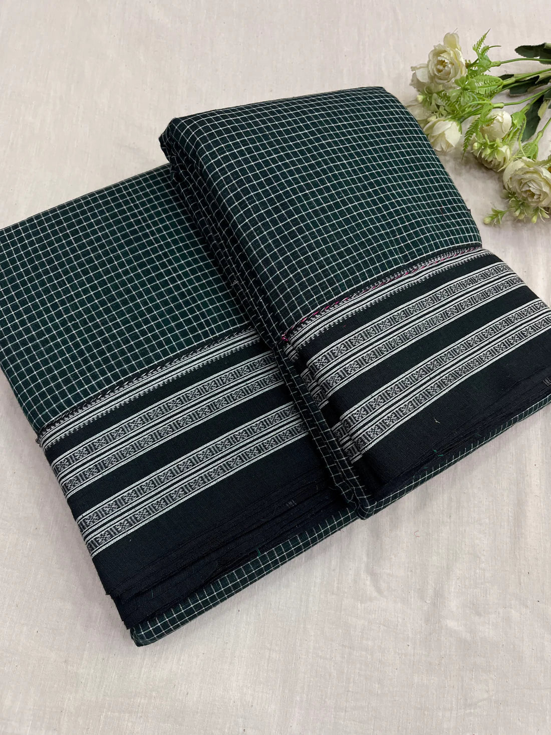 Bottle Green Gadi Dadi Border Patteda Anchu Saree
