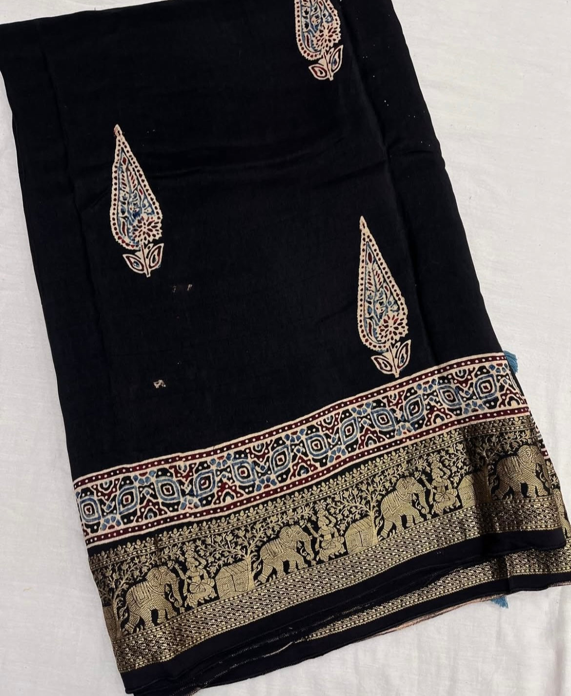 Premium Ajrakh Dola Silk Saree – Naturally Dyed & Handcrafted Elegance