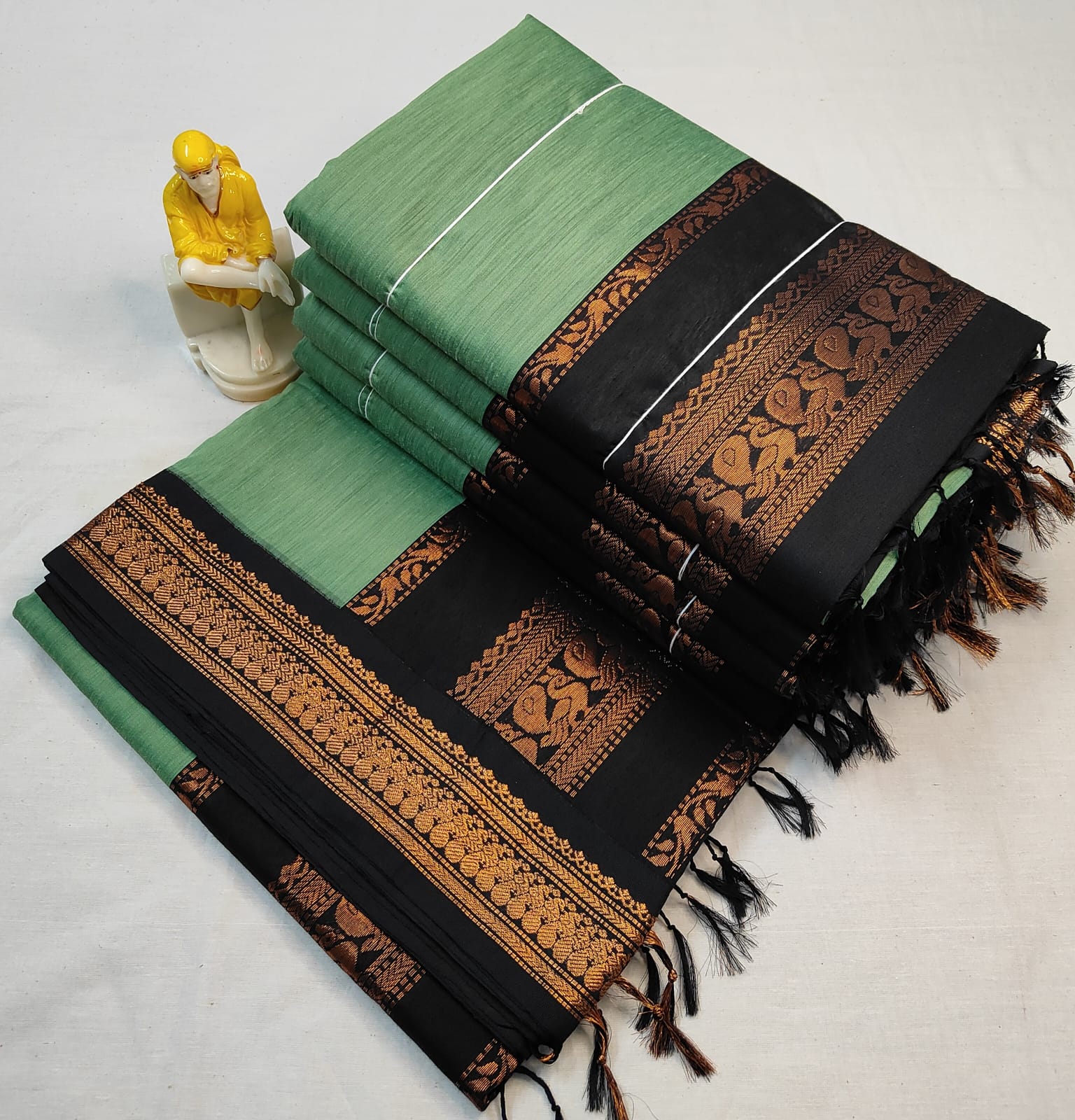 Green with Black Silk Cotton Saree