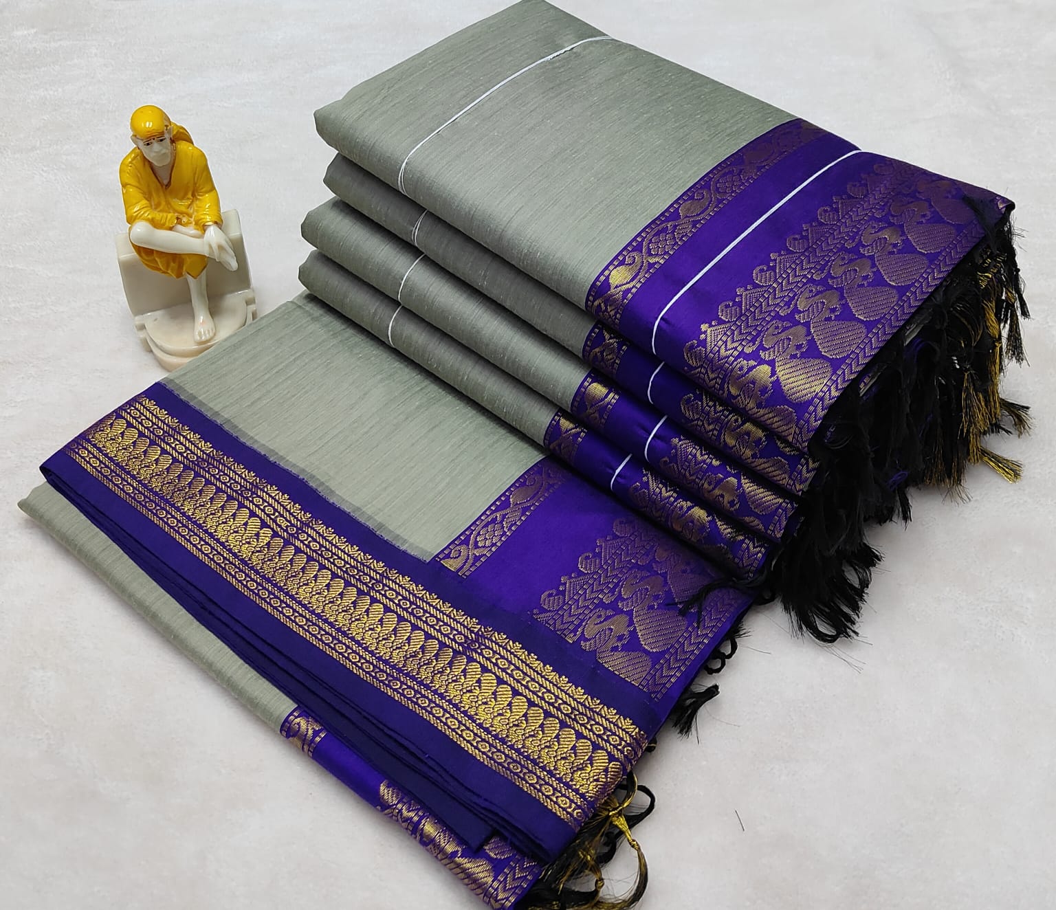 Grey with Blue Silk Cotton Saree