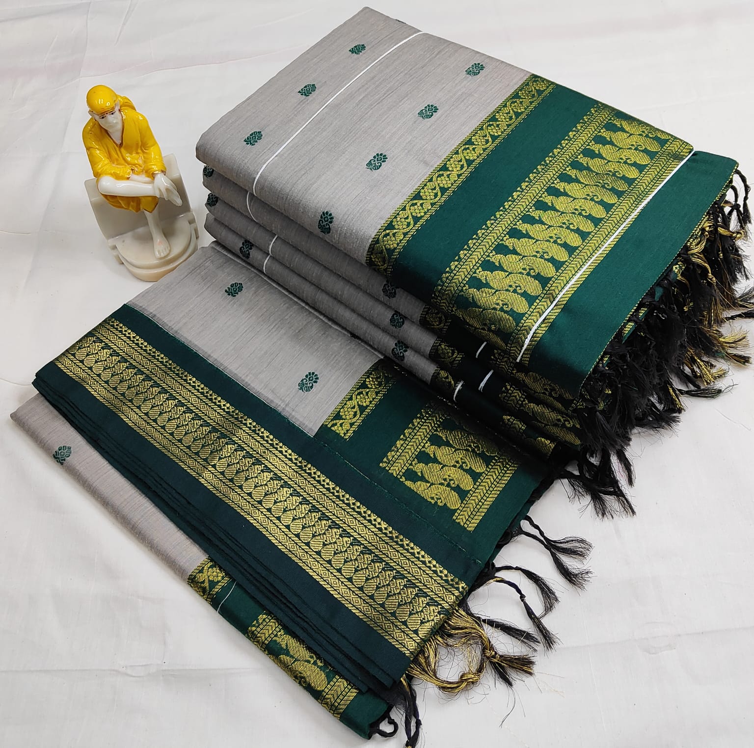 Grey with Green Silk Cotton Saree