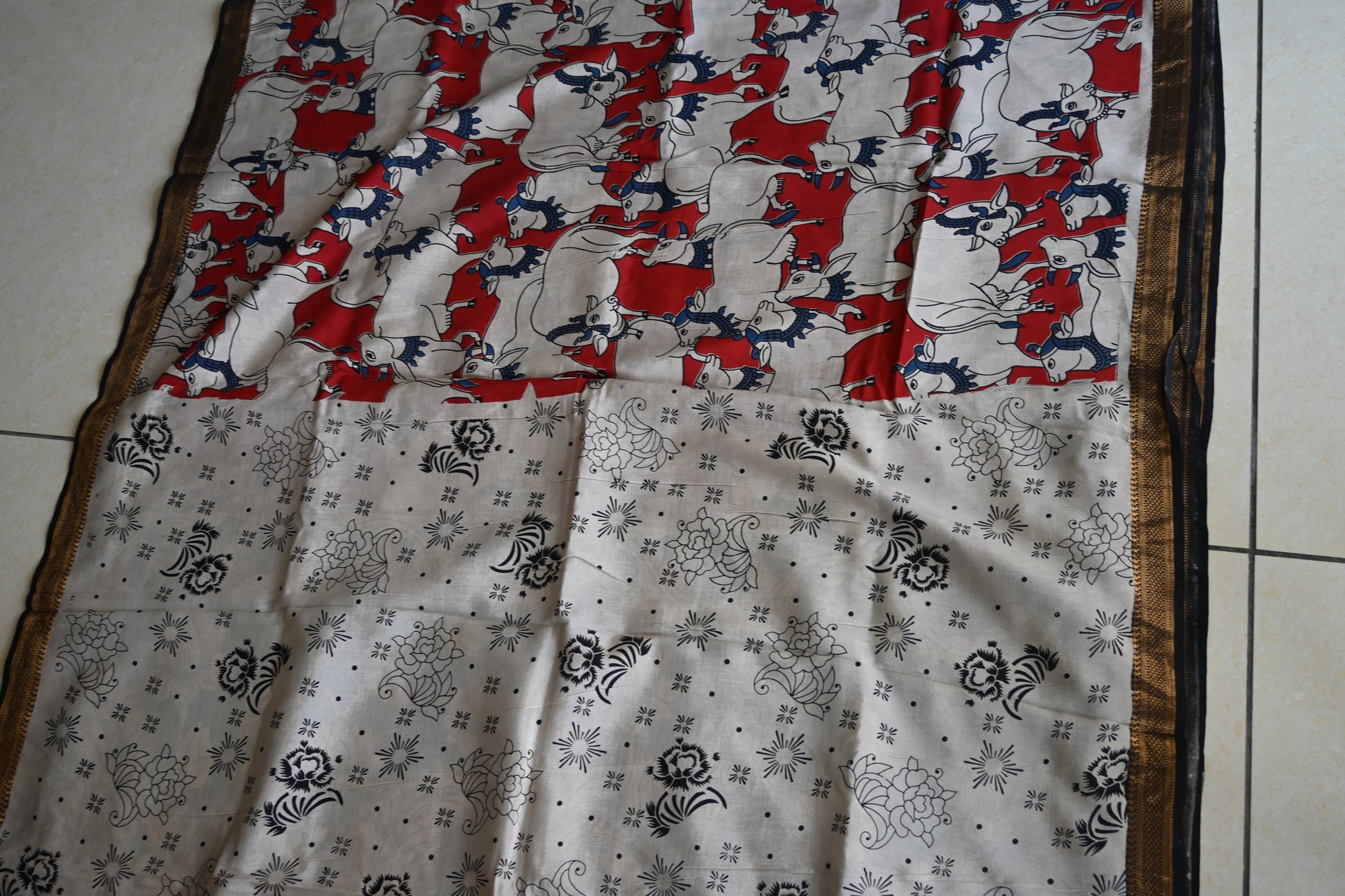 3. It's a hand block print, so, there will be some spill of dye in between sarees, which is not considered as defective or damage.