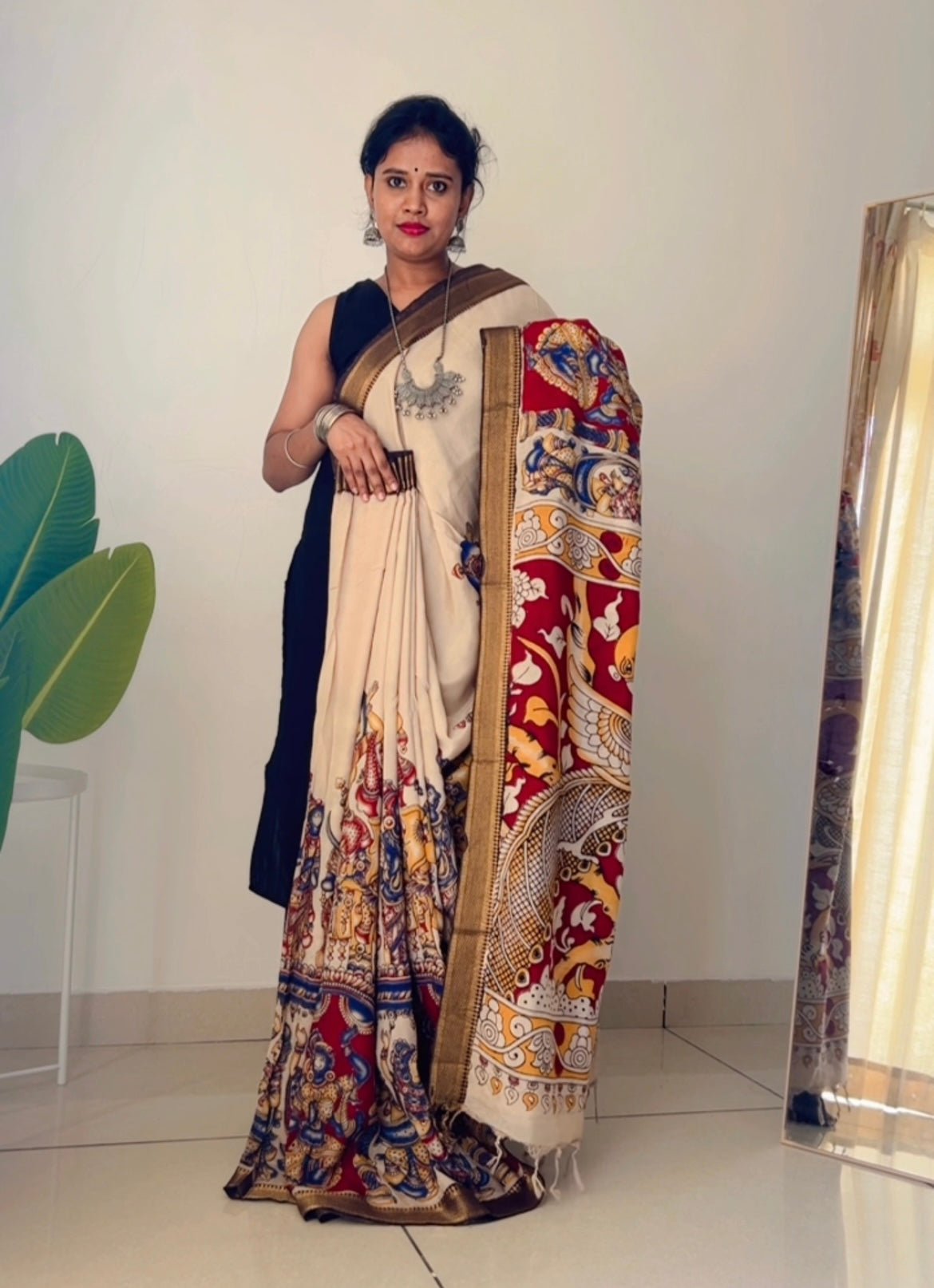 3. It's a hand block print, so, there will be some spill of dye in between sarees, which is not considered as defective or damage.