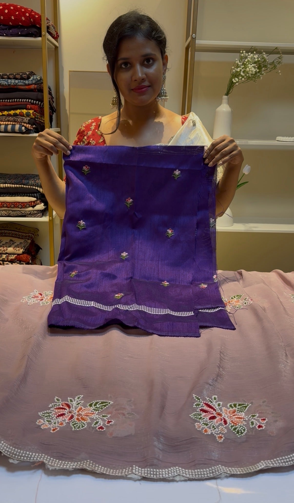Peach floral embroidery saree