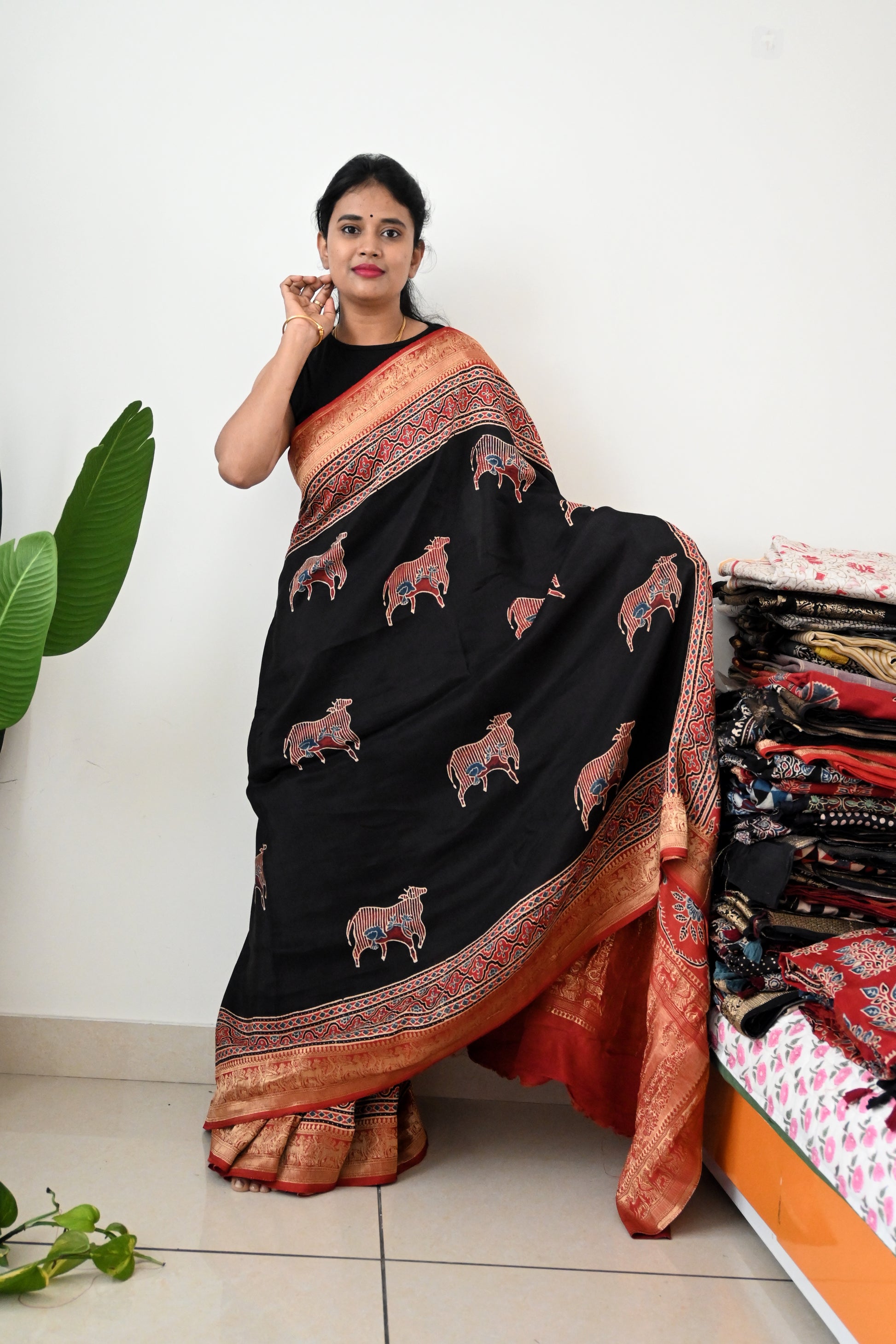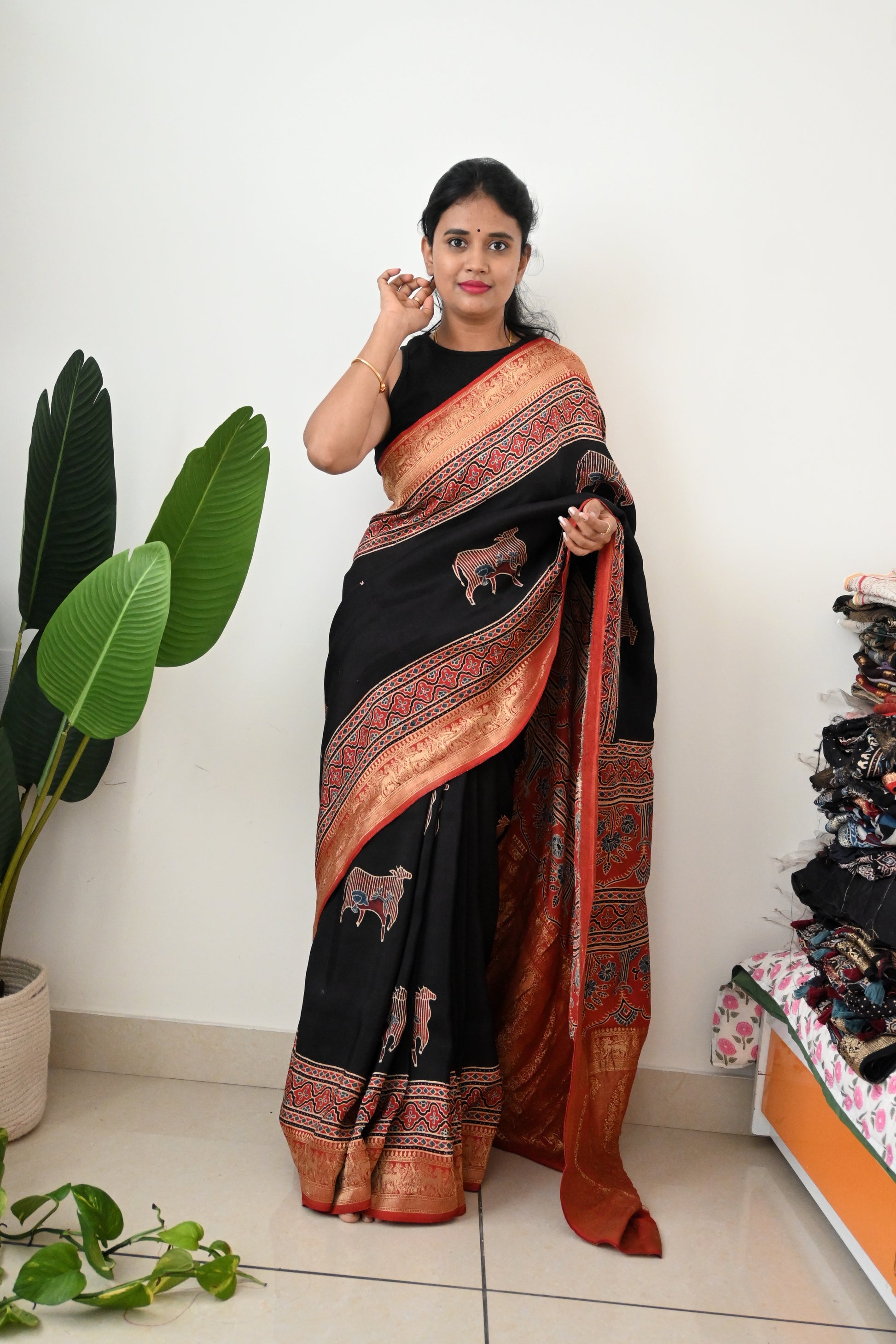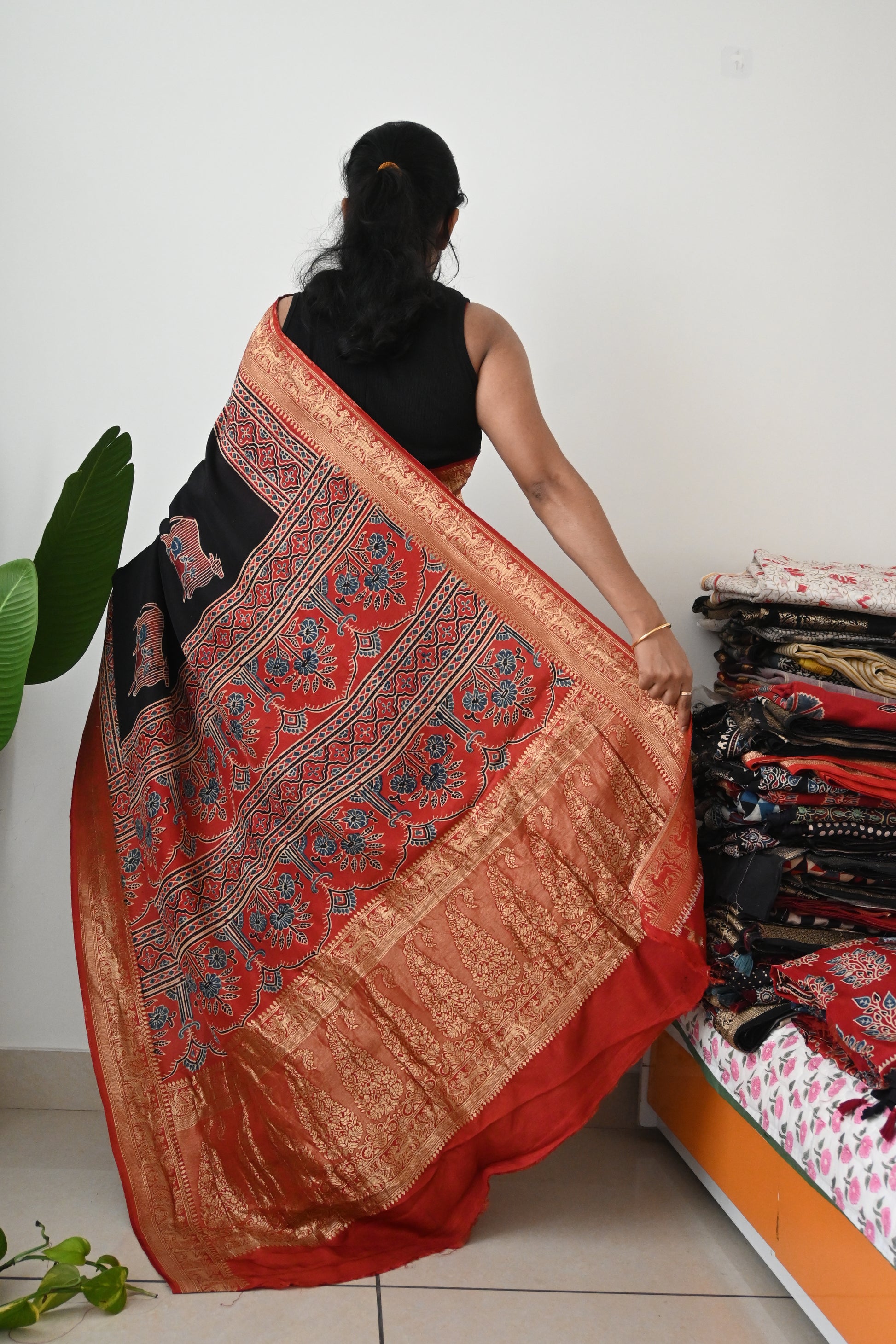 Premium Ajrakh Dola Silk Saree – Naturally Dyed & Handcrafted Elegance