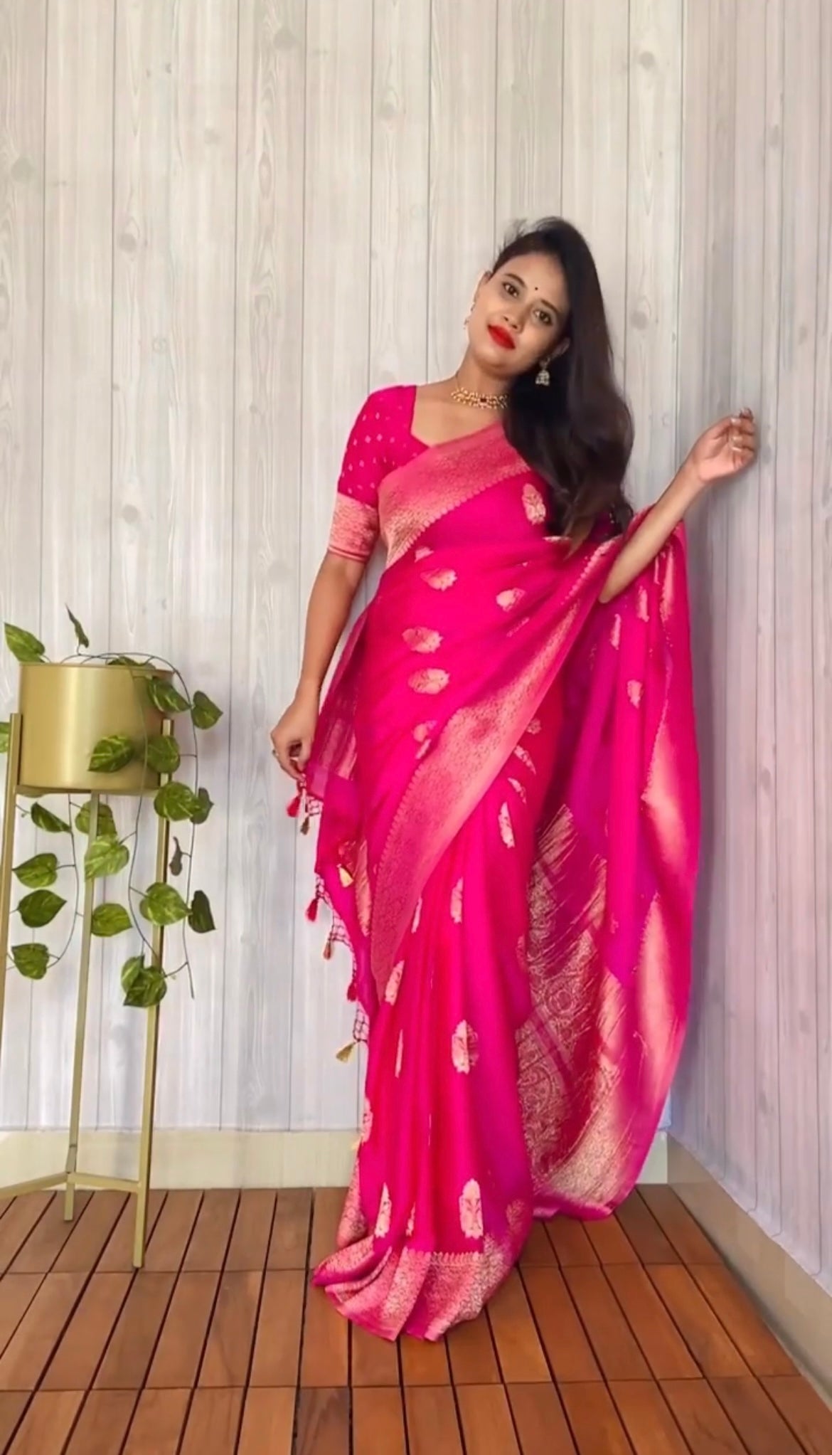 PINK BIG BUTTA DESIGNER SOFT GEORGETTE CREPE SILK SAREE