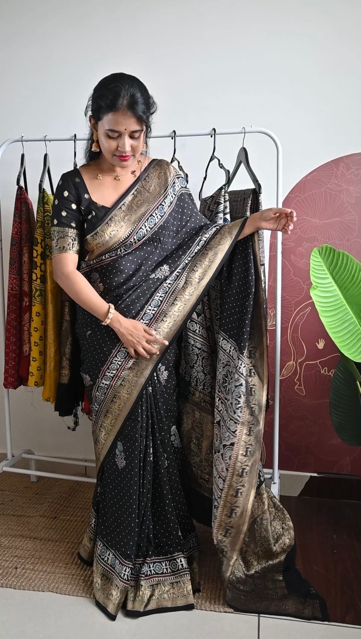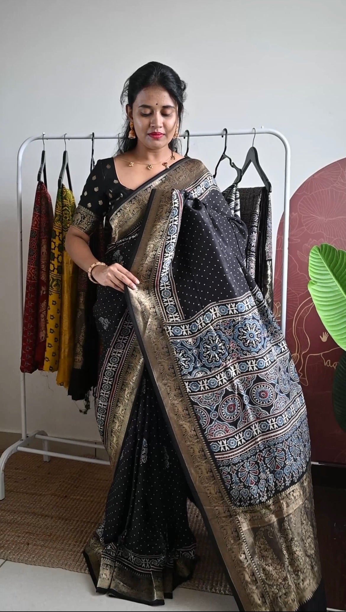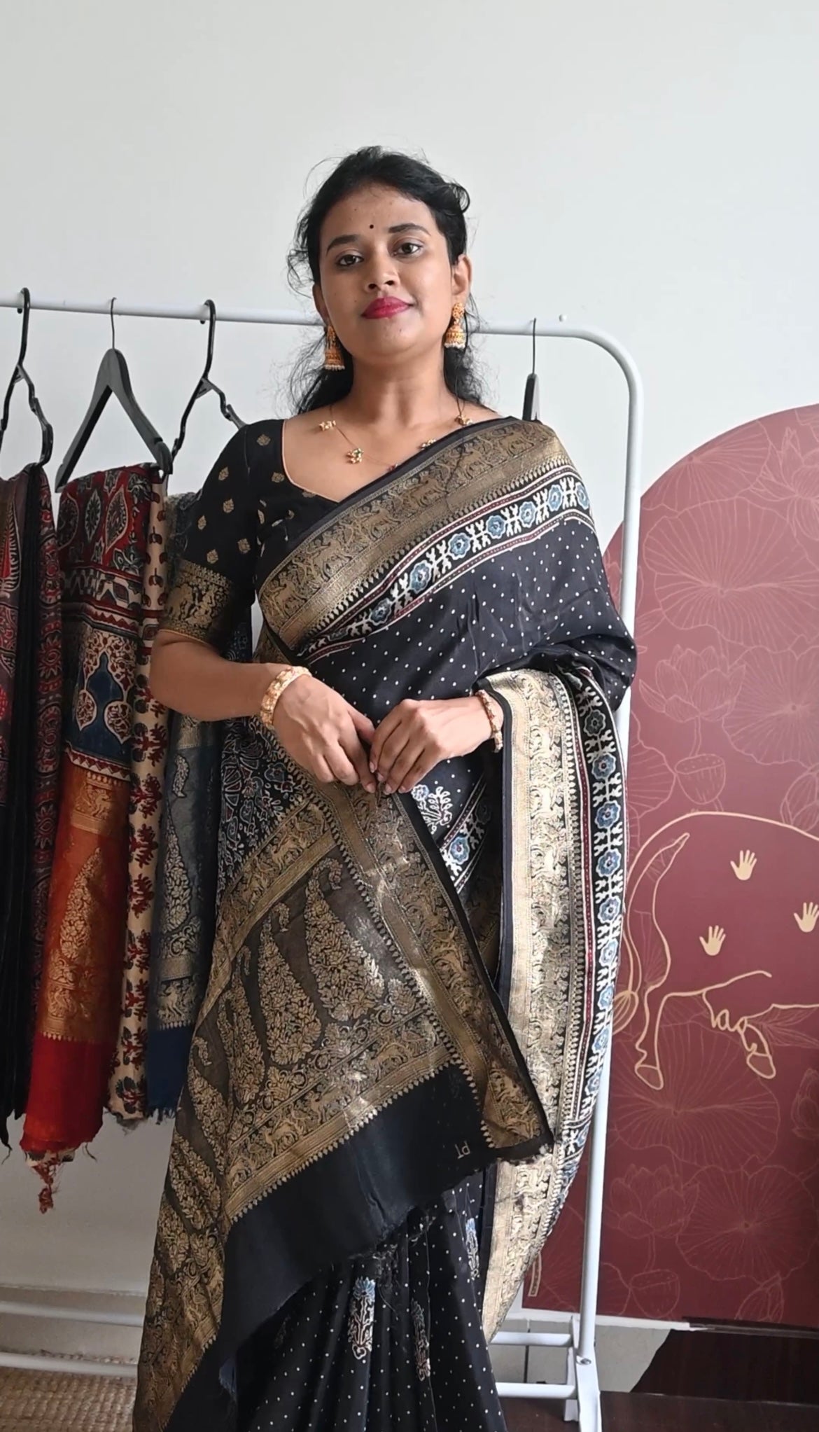 Premium hand block Dola silk saree