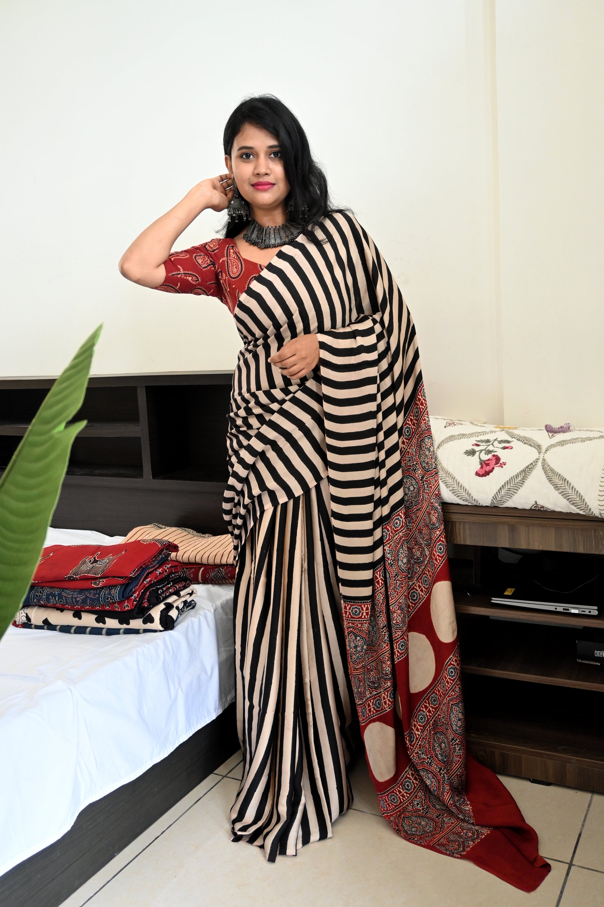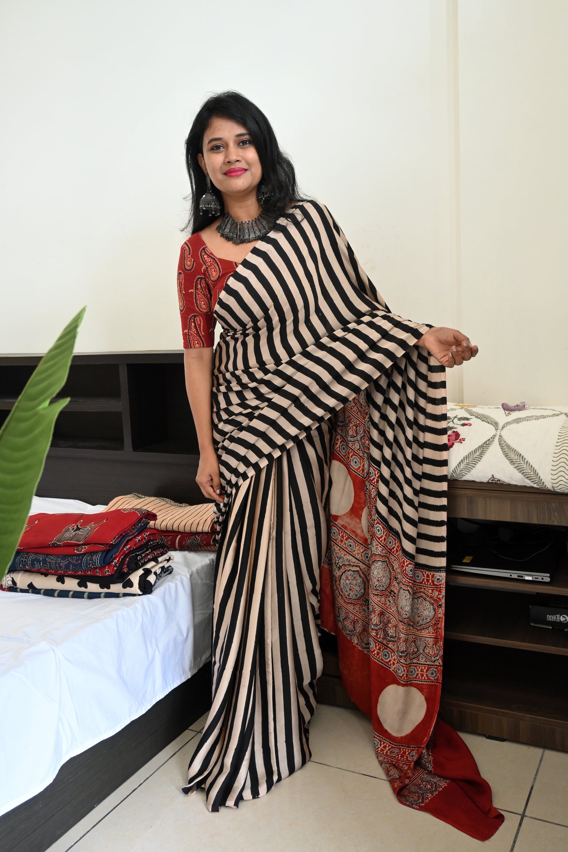 3. It's a hand block print, so, there will be some spill of dye in between sarees, which is not considered as defective or damage.