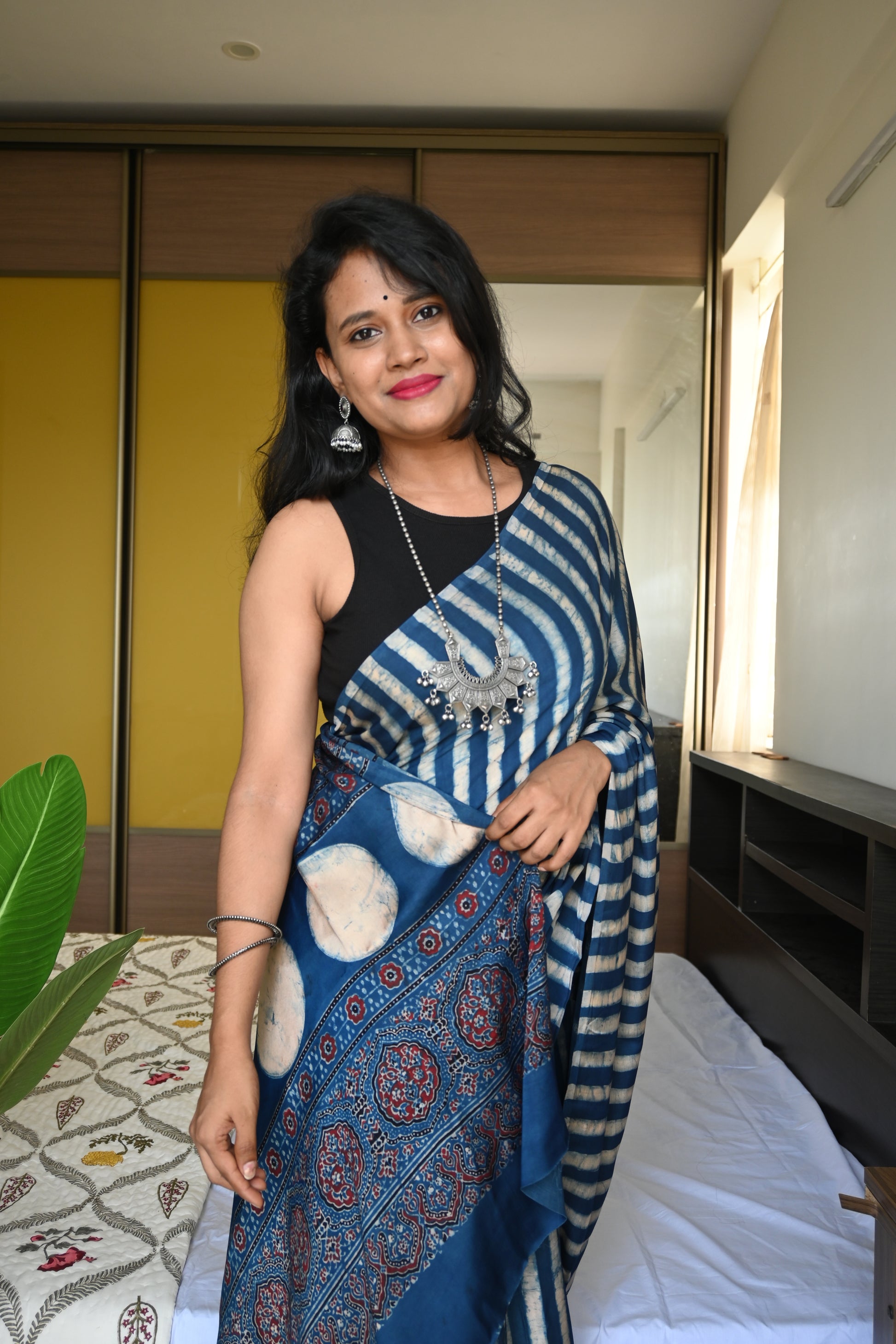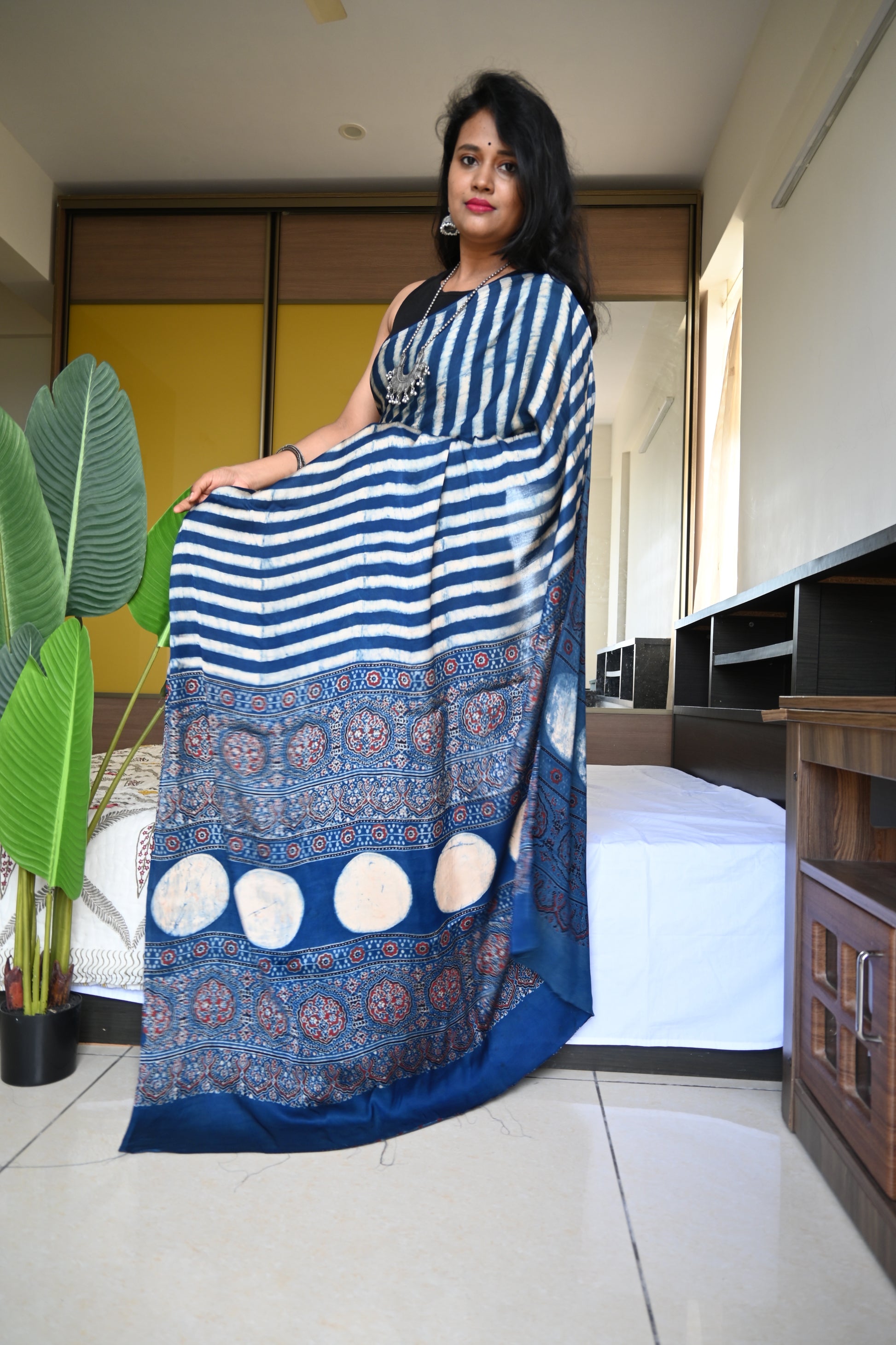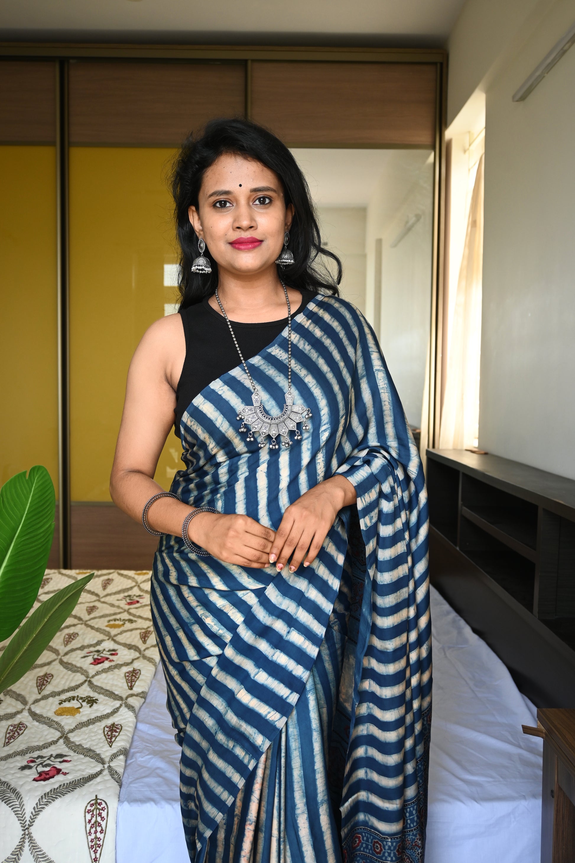 3. It's a hand block print, so, there will be some spill of dye in between sarees, which is not considered as defective or damage.