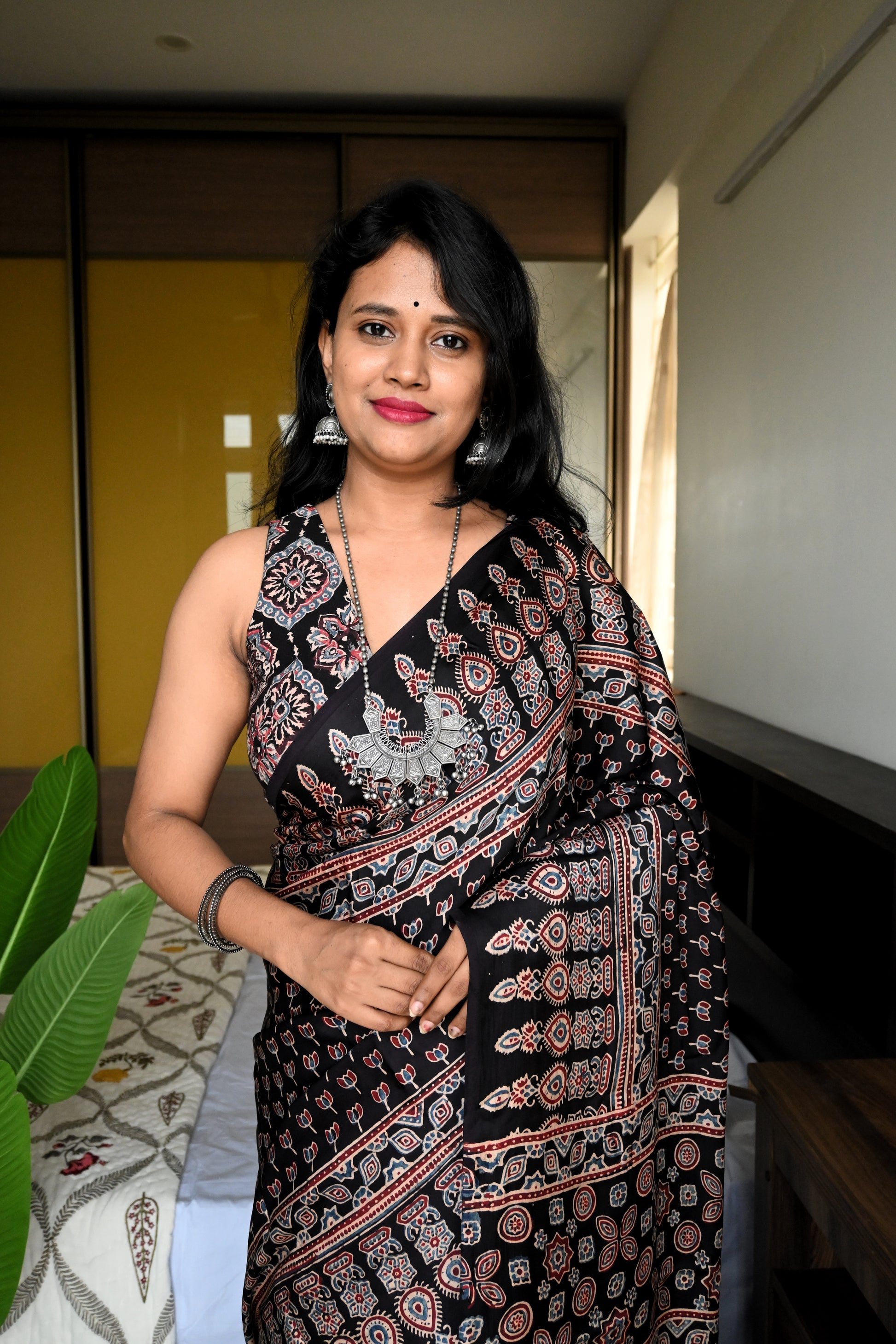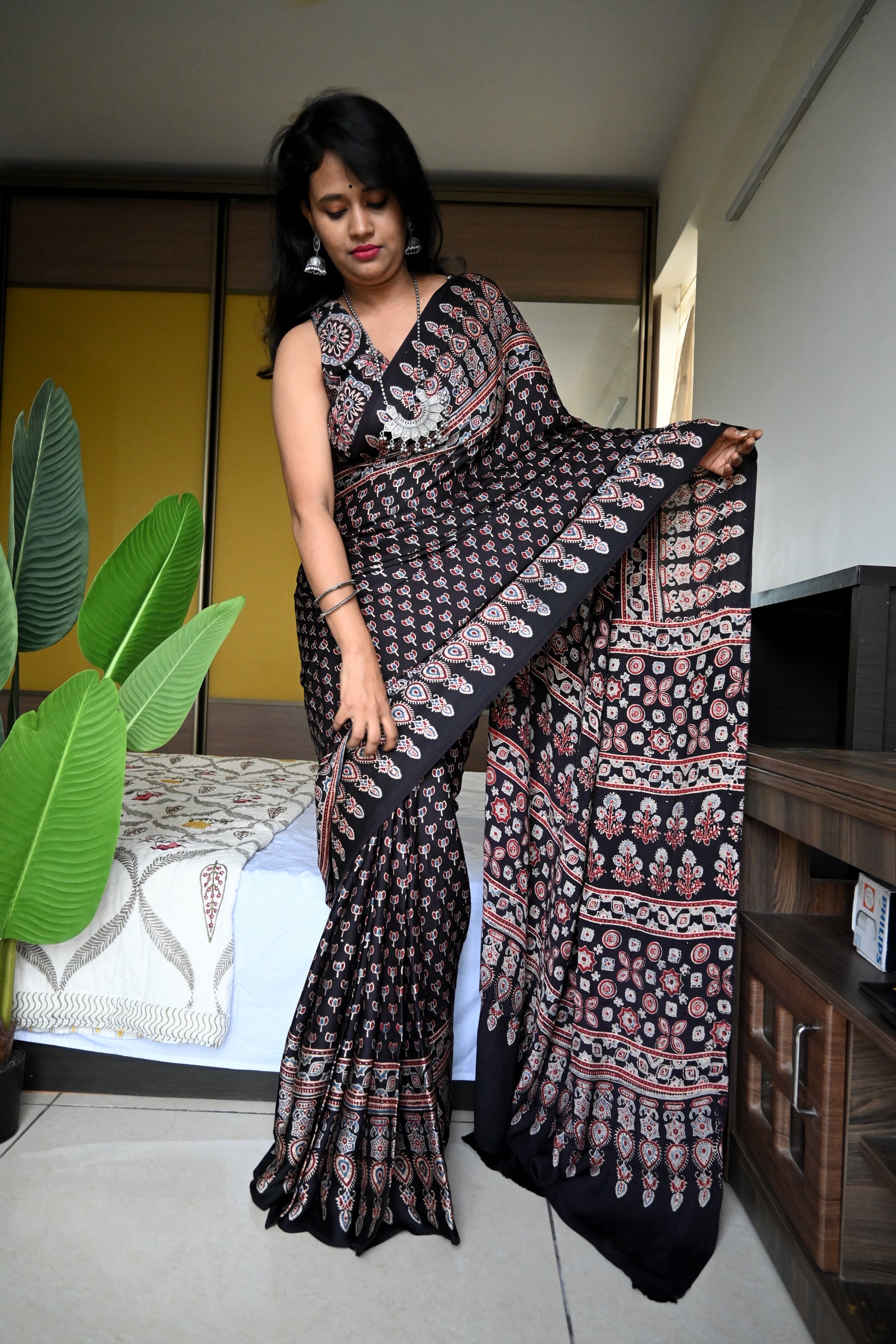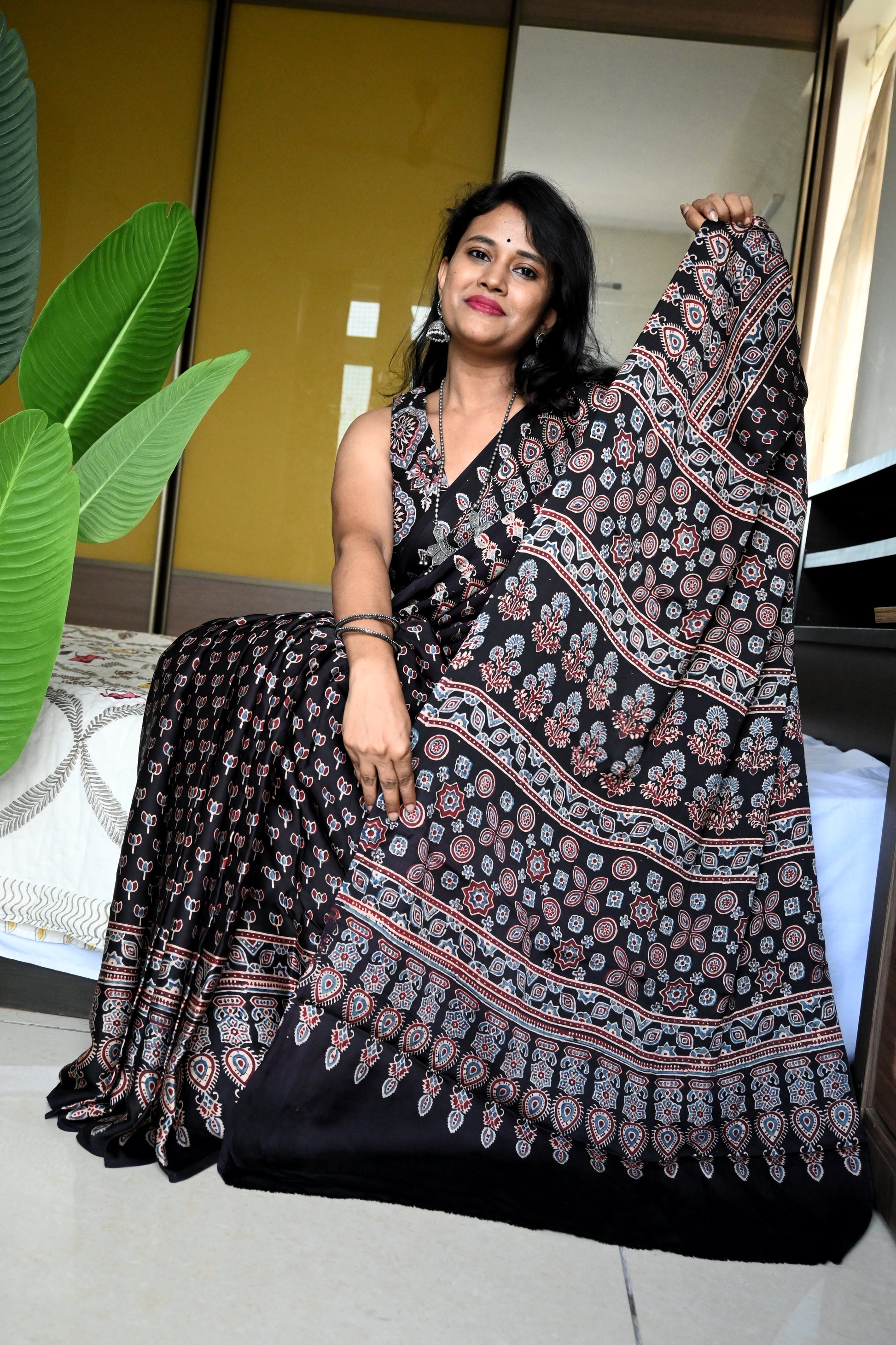 3. It's a hand block print, so, there will be some spill of dye in between sarees, which is not considered as defective or damage.