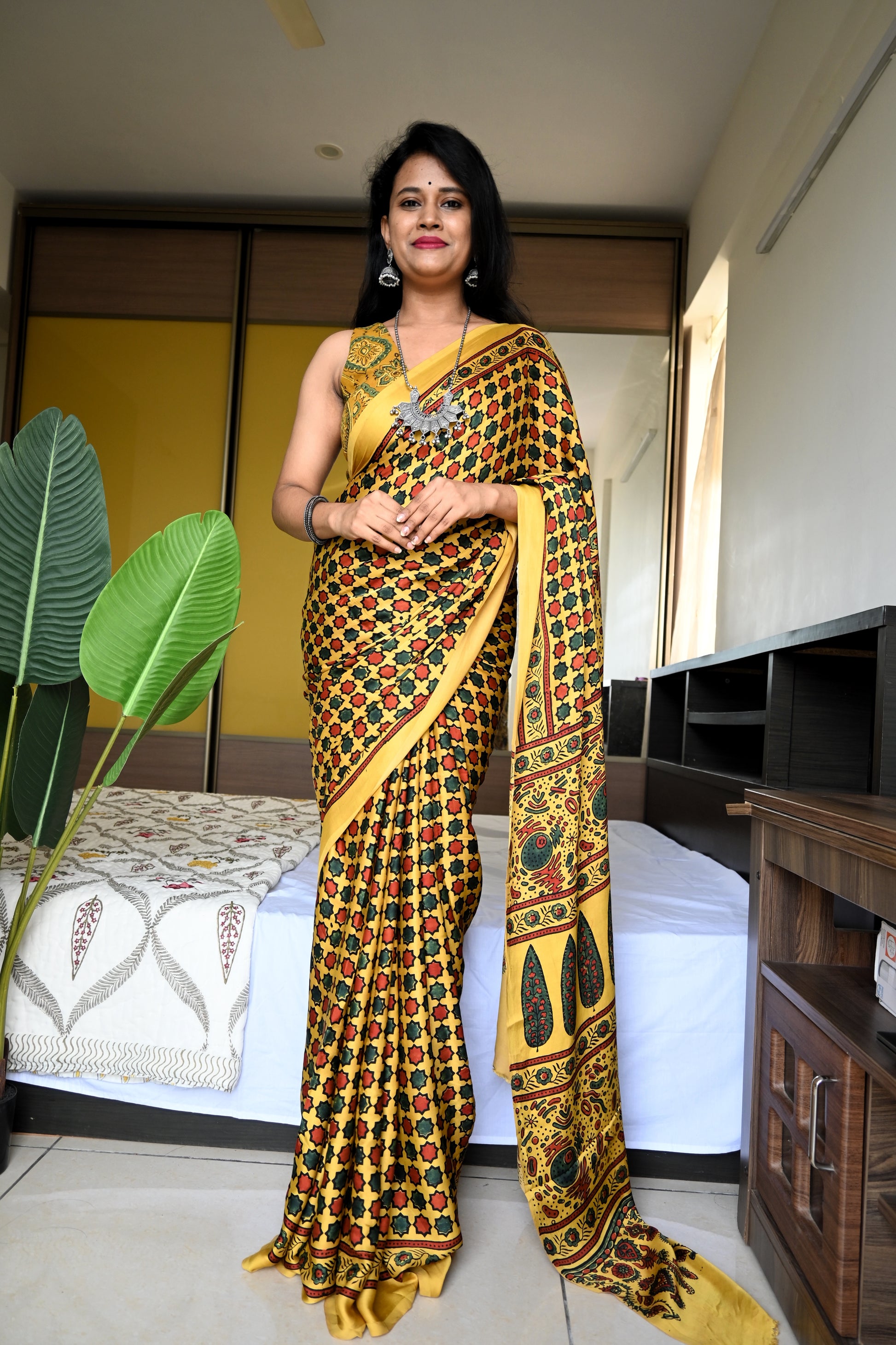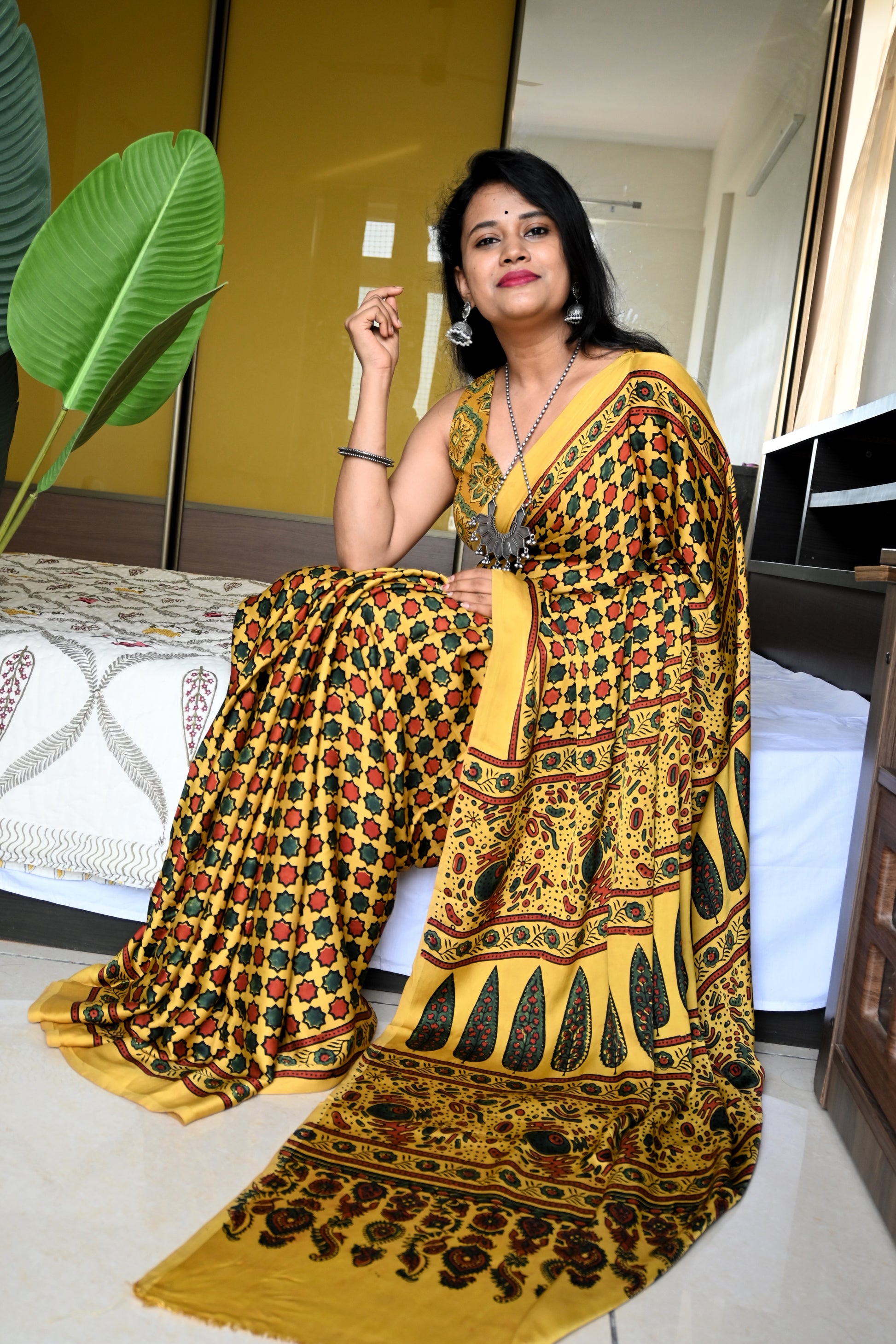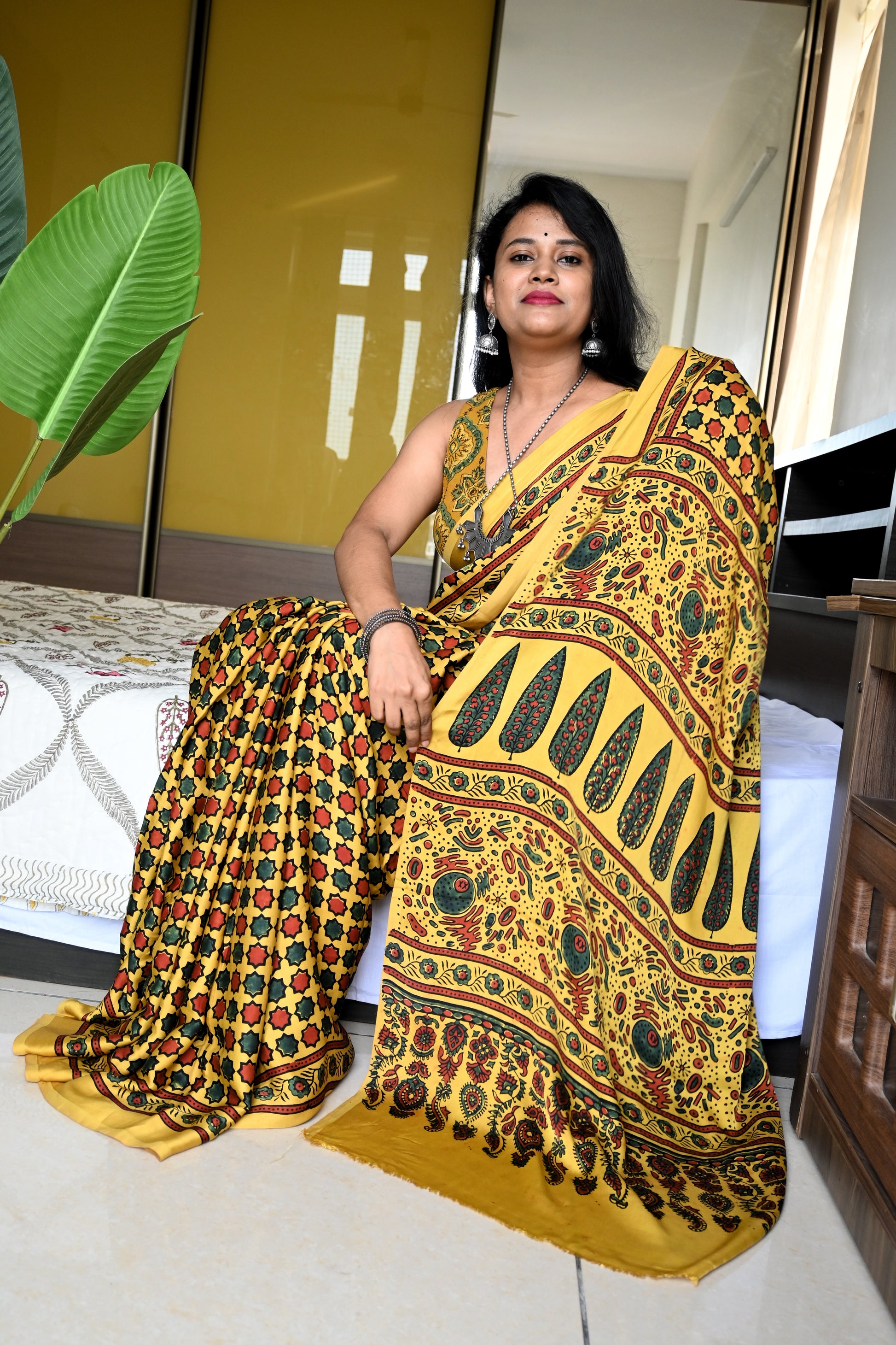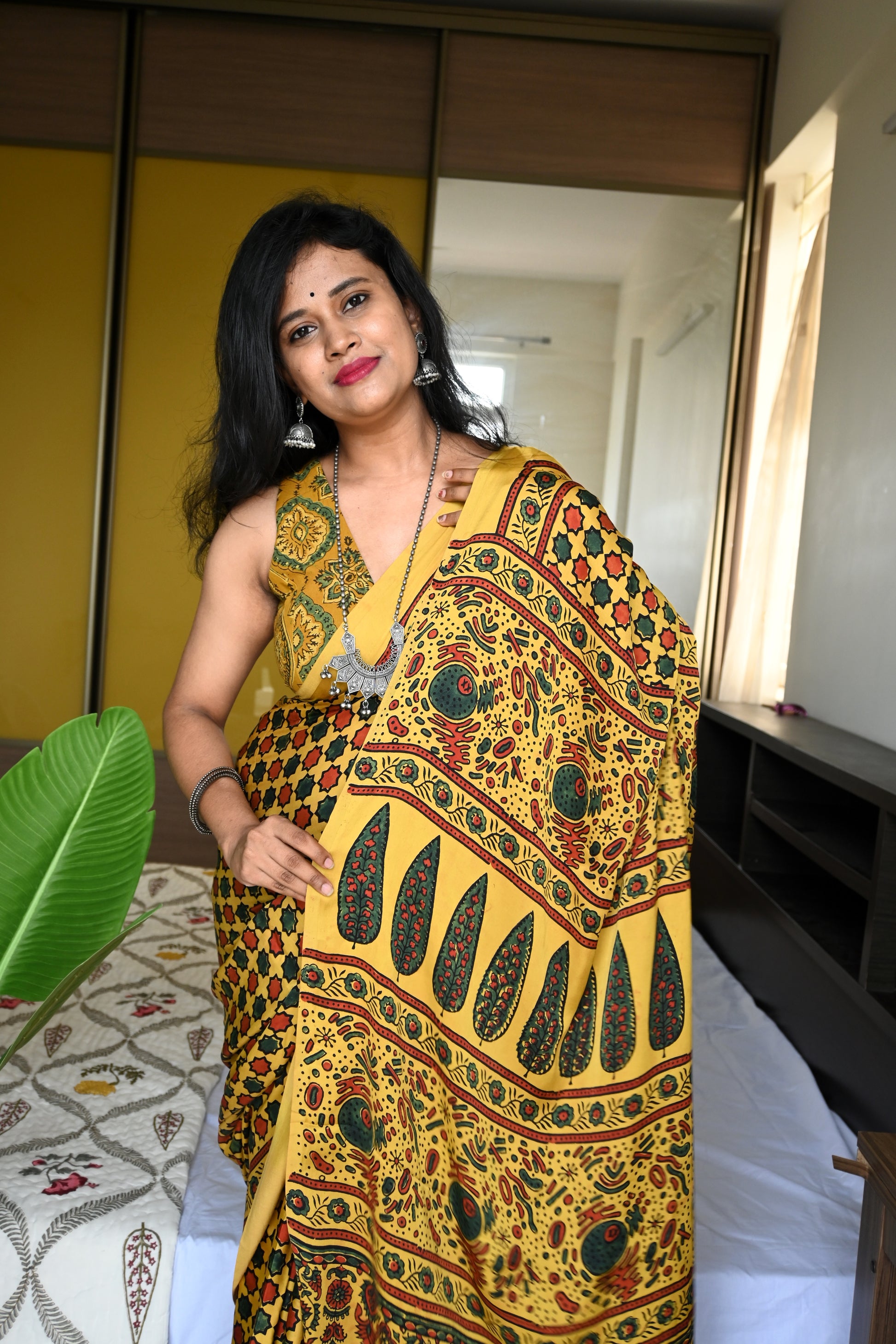 3. It's a hand block print, so, there will be some spill of dye in between sarees, which is not considered as defective or damage.