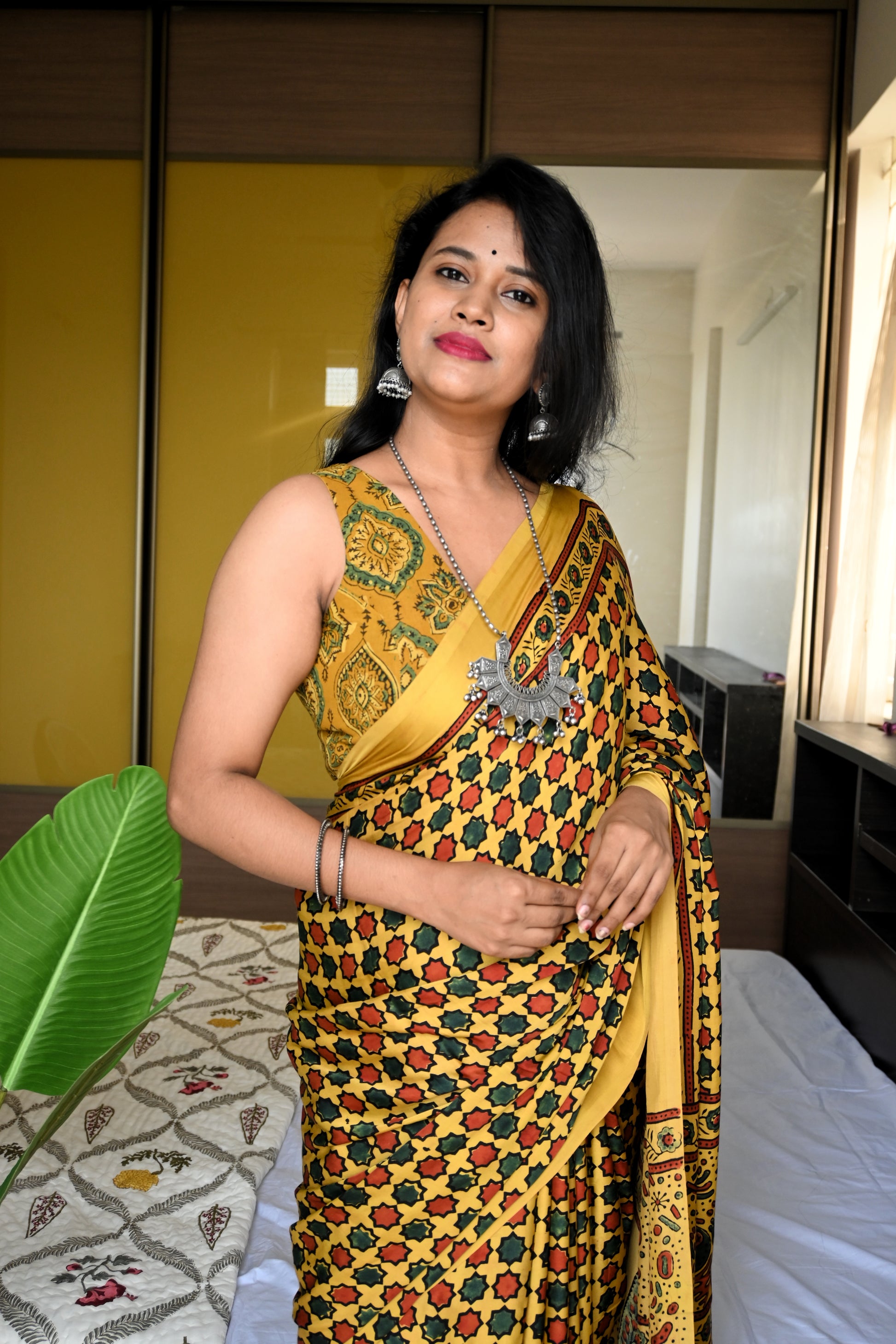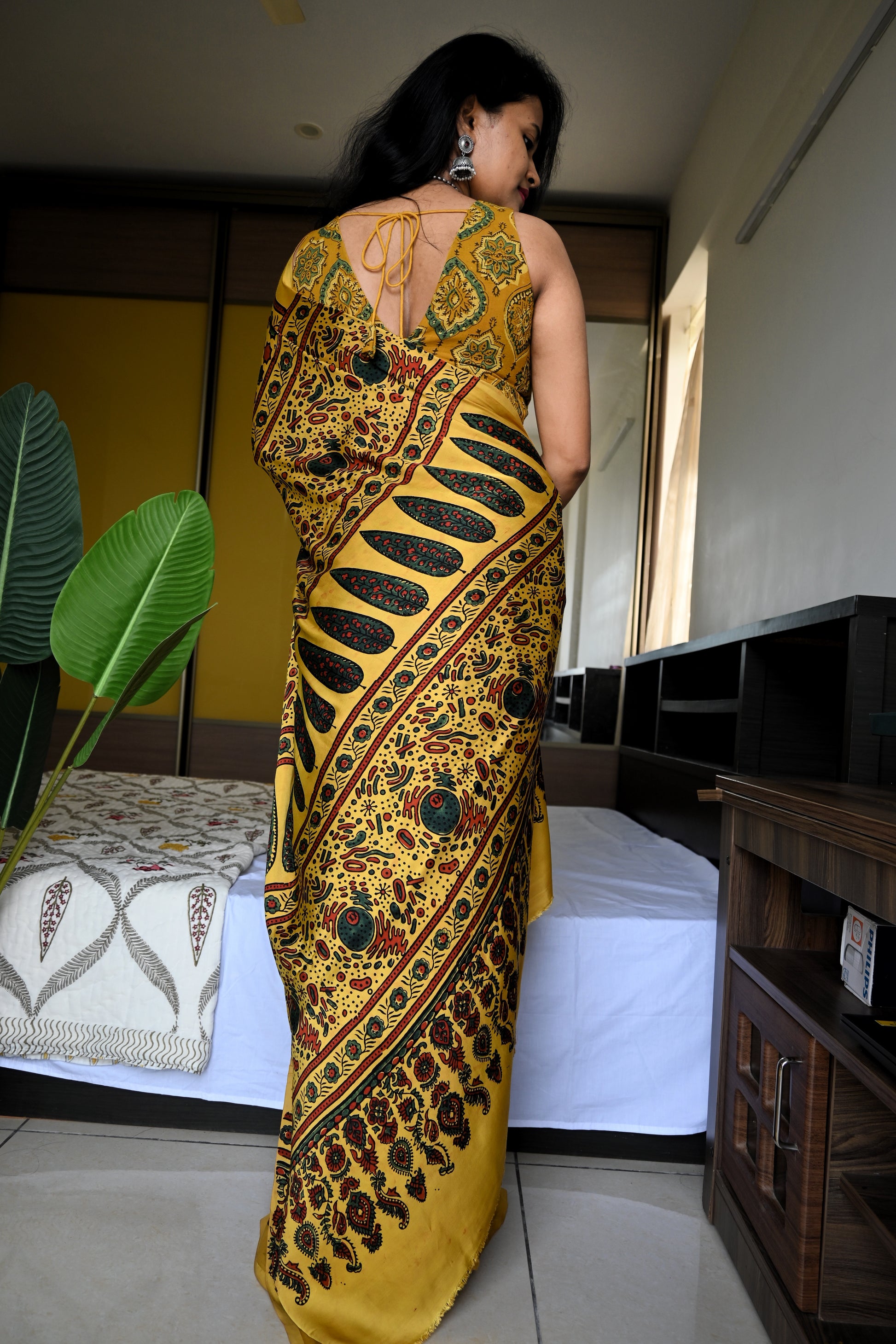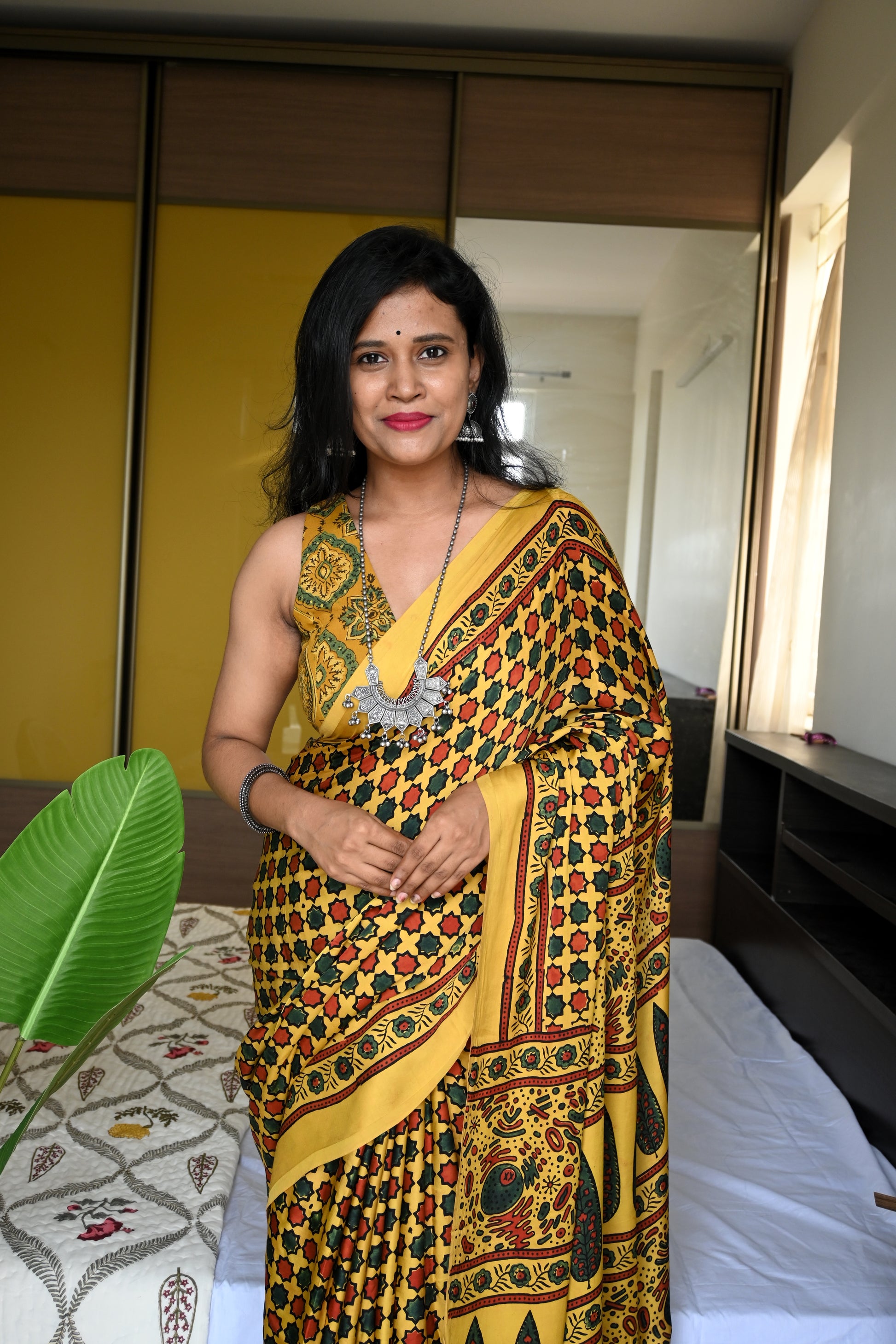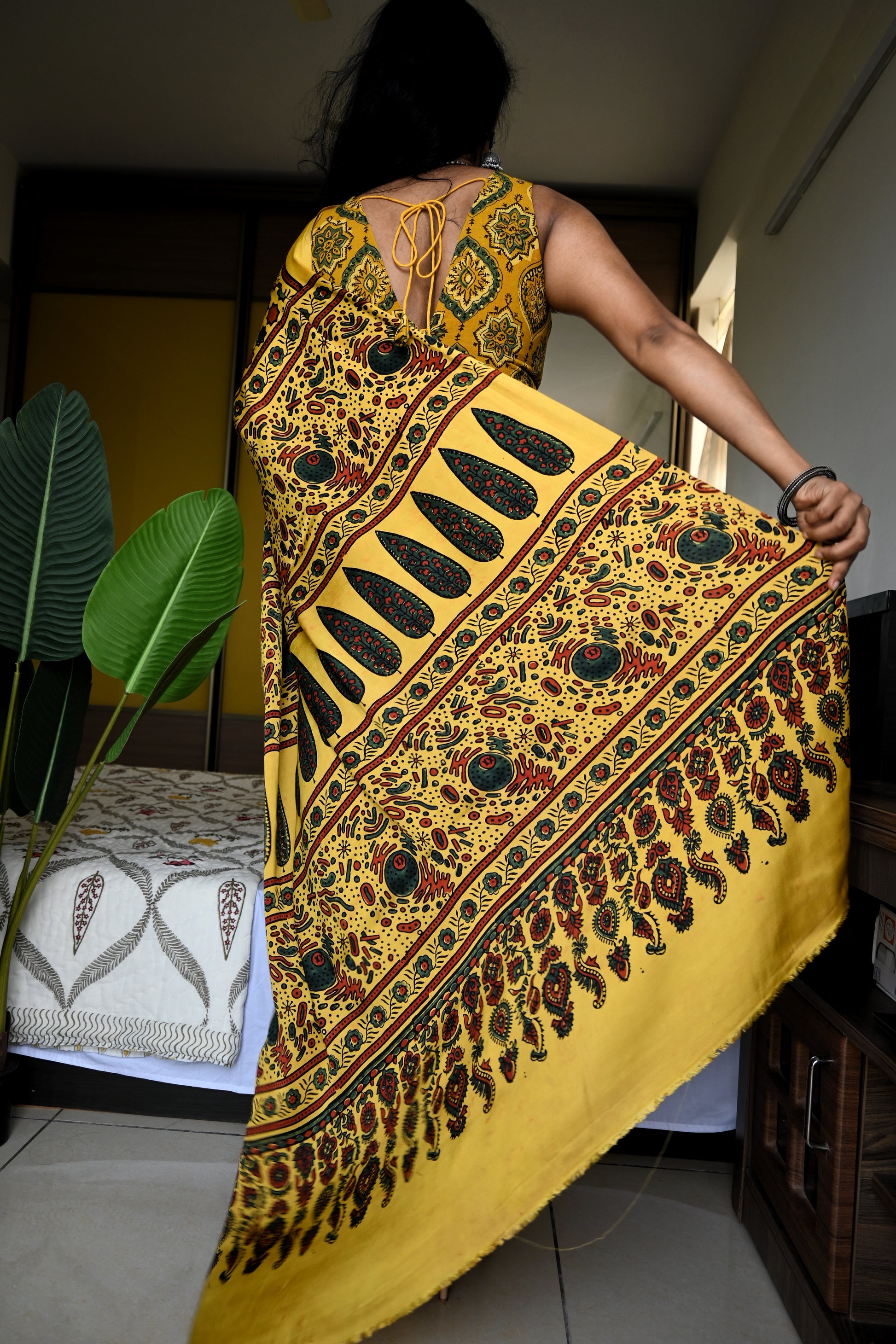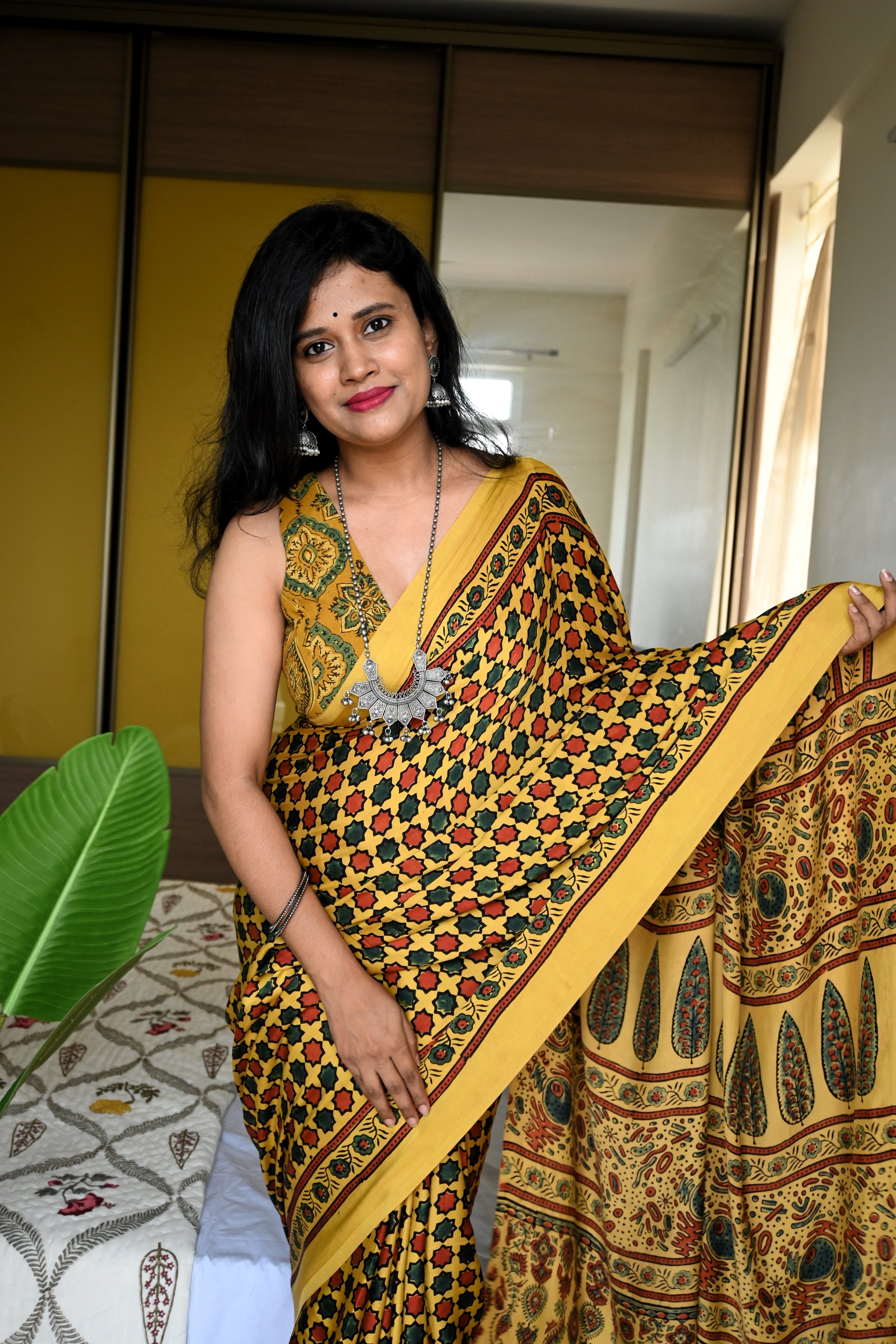 3. It's a hand block print, so, there will be some spill of dye in between sarees, which is not considered as defective or damage.