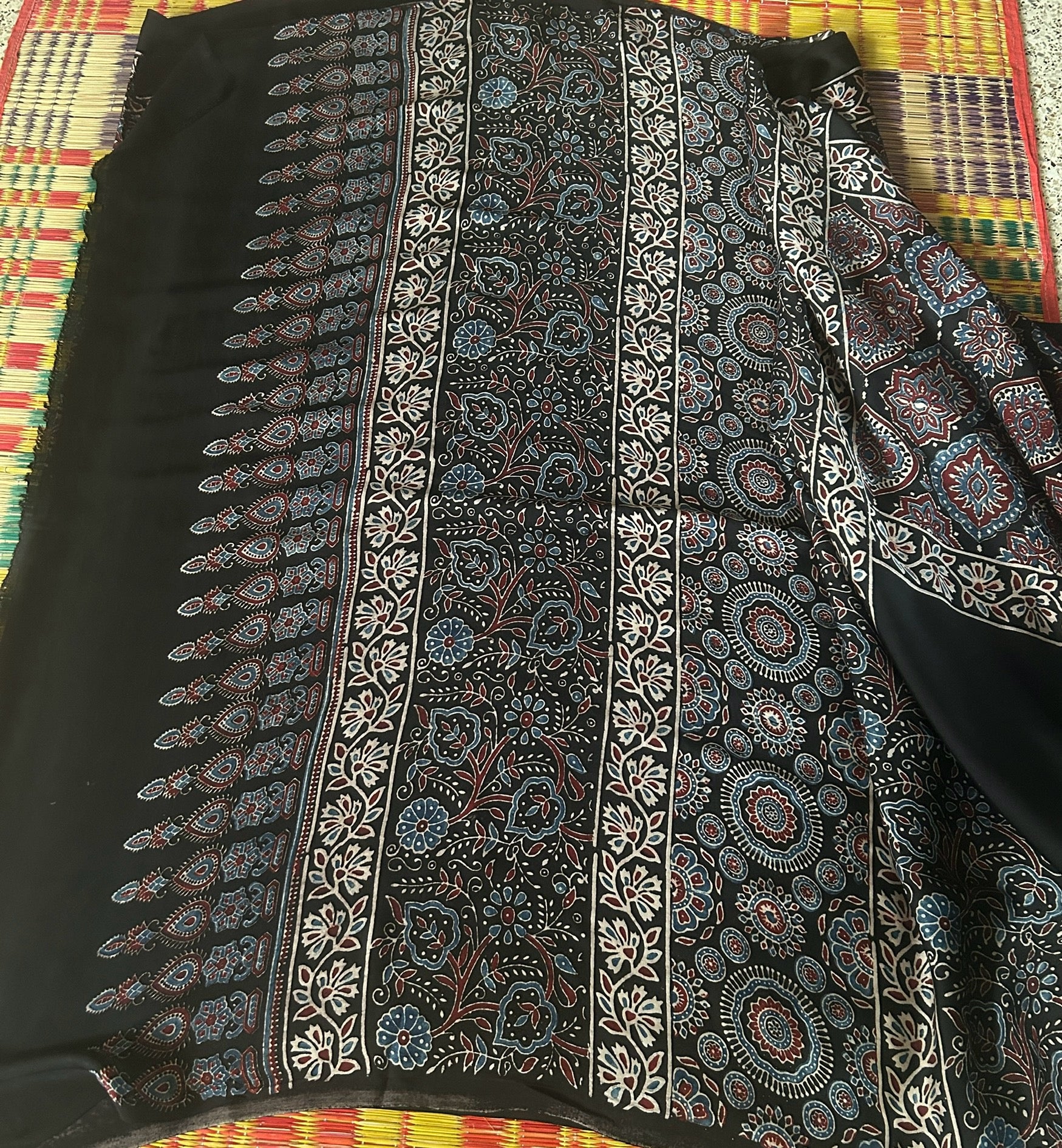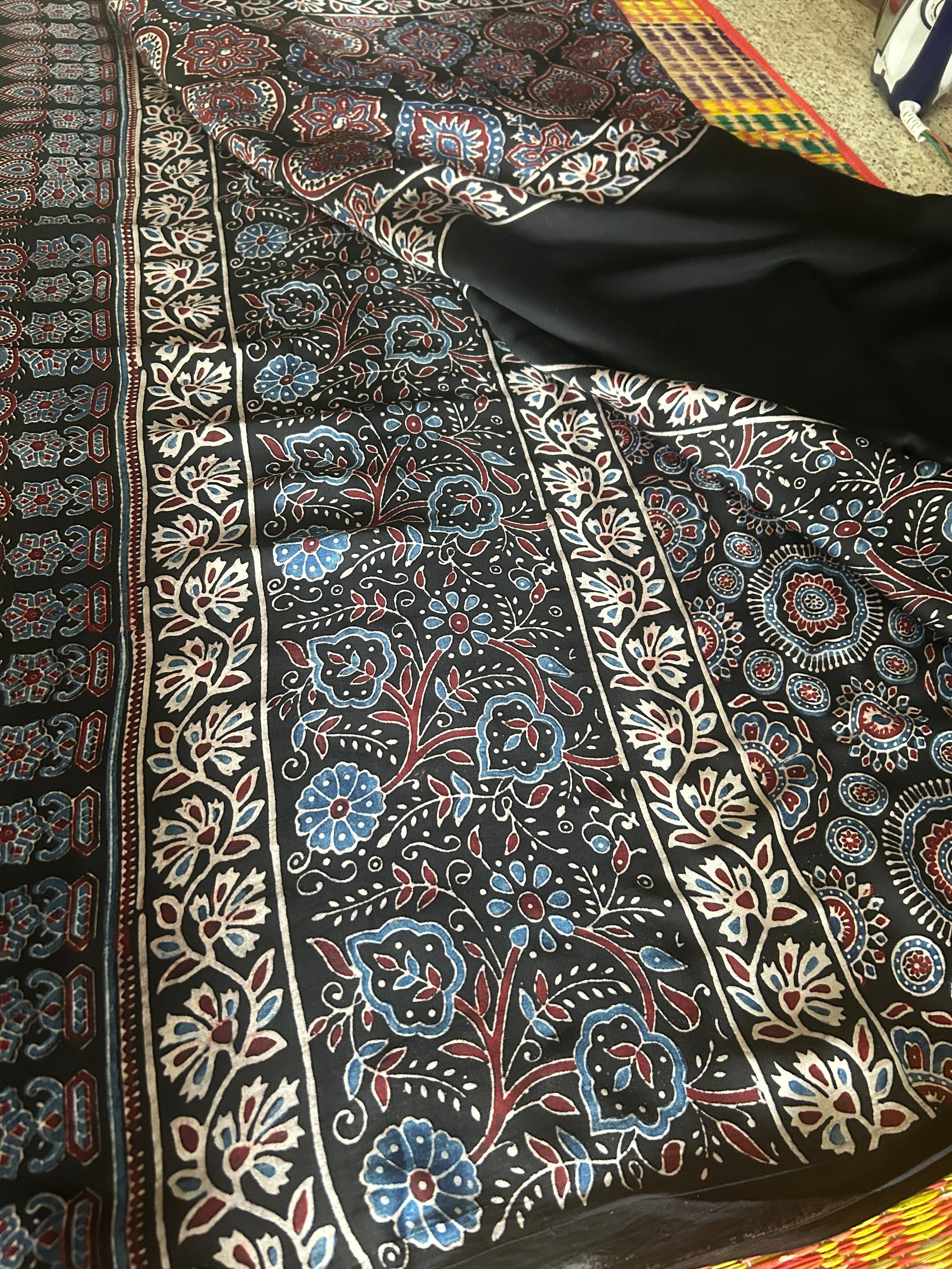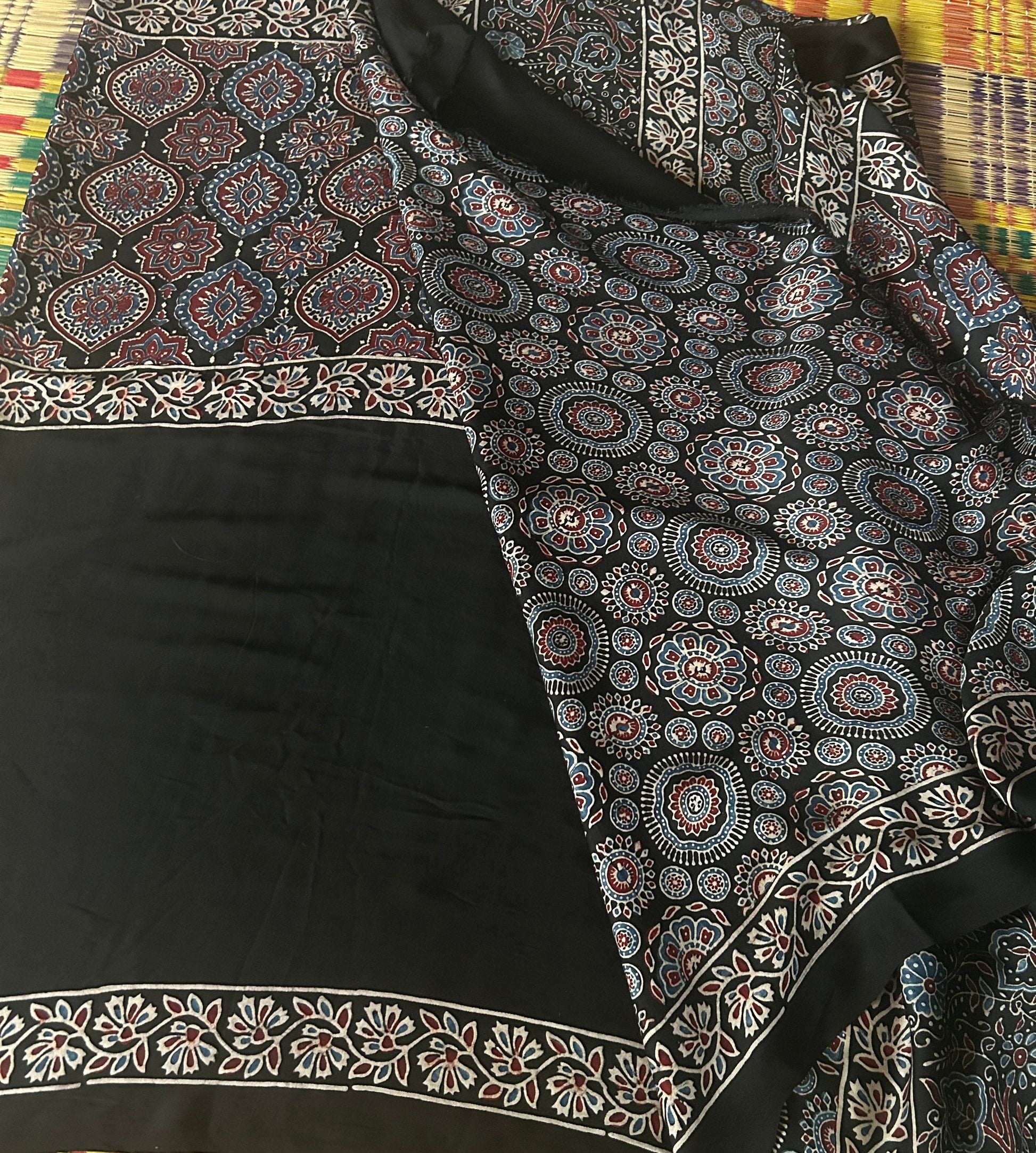3. It's a hand block print, so, there will be some spill of dye in between sarees, which is not considered as defective or damage.