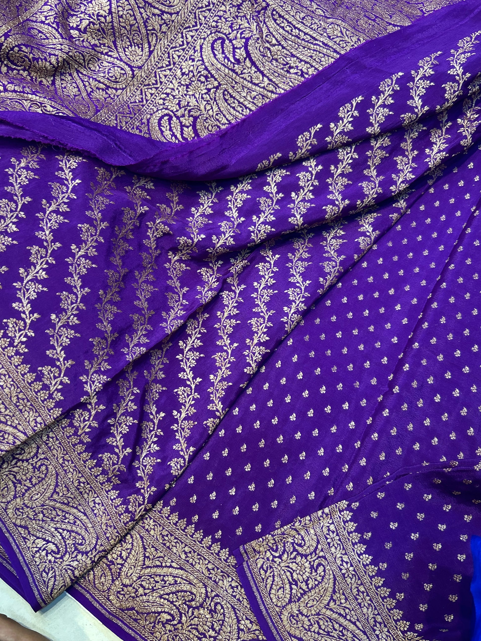 Purple pure crepe Banarasi saree