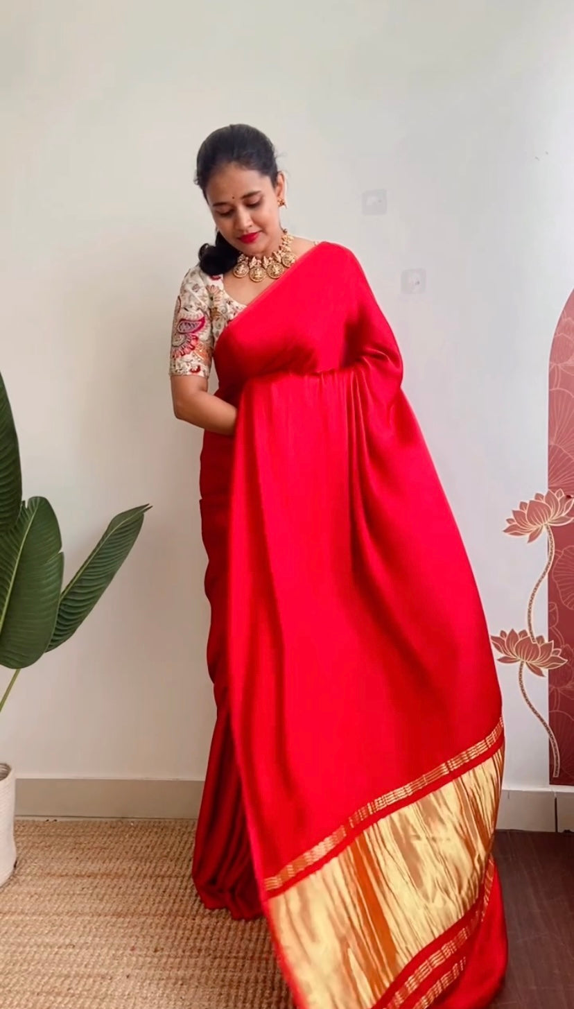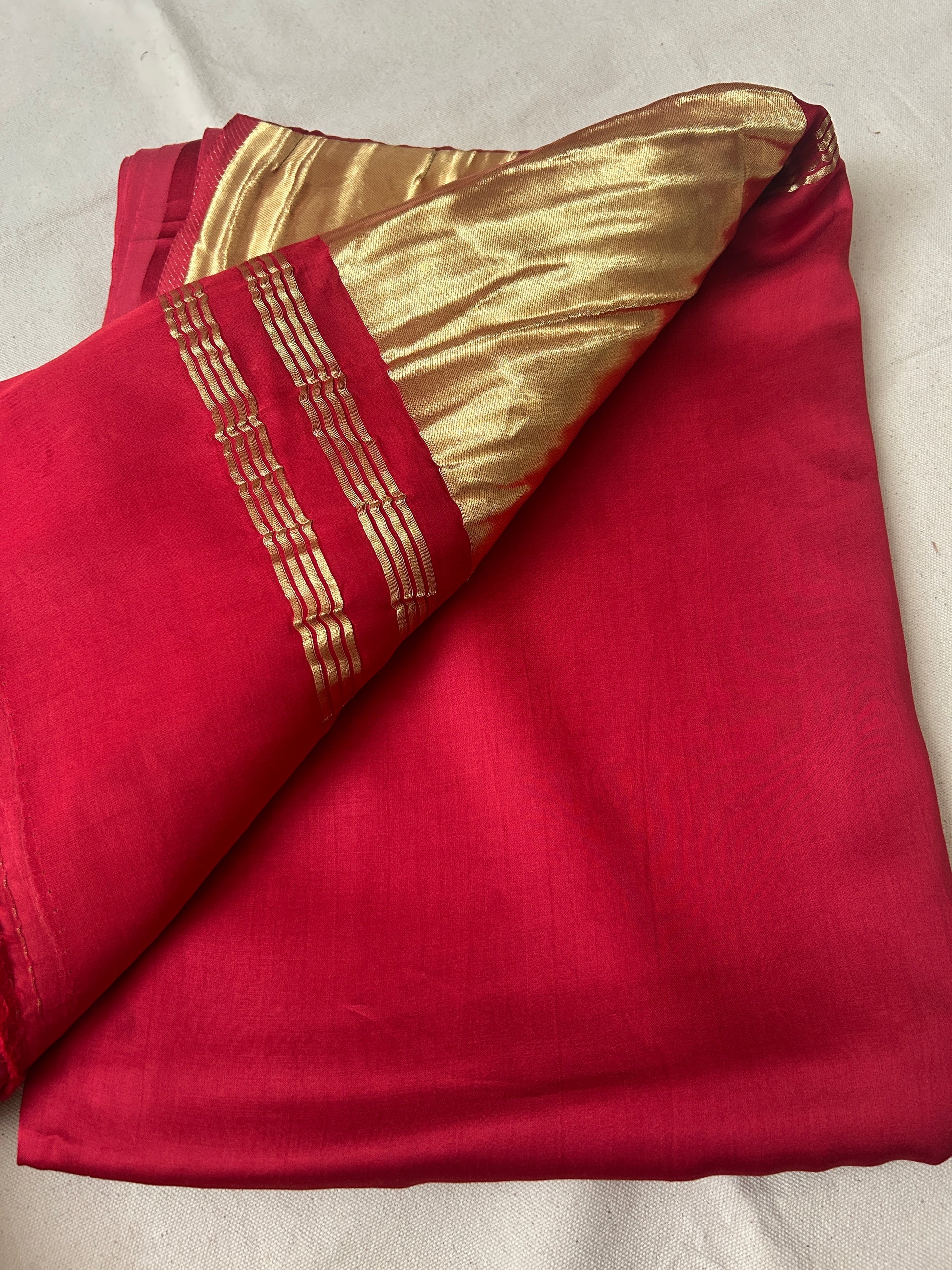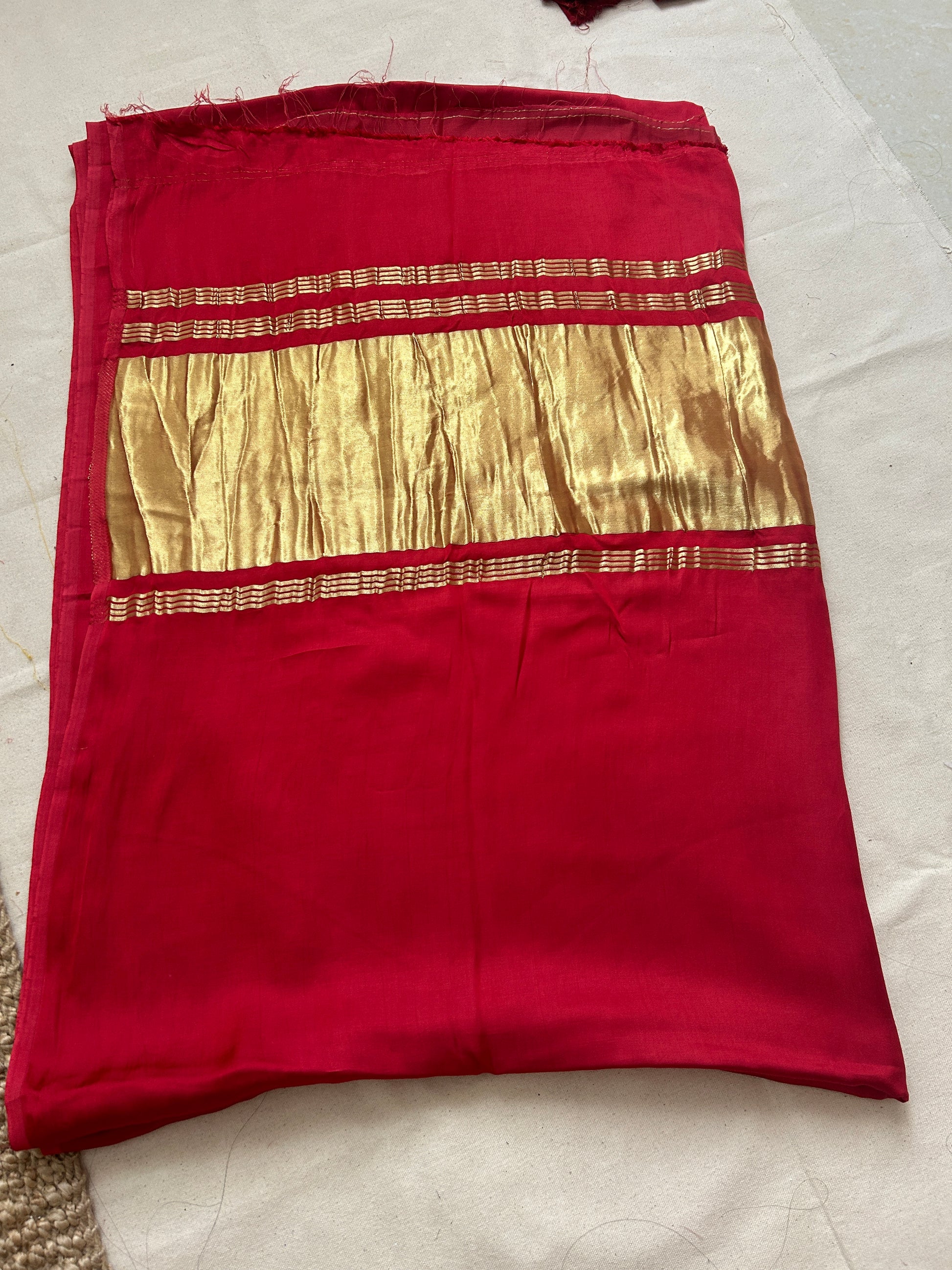 Red Pure modal silk saree with lagadi pallu with running blouse