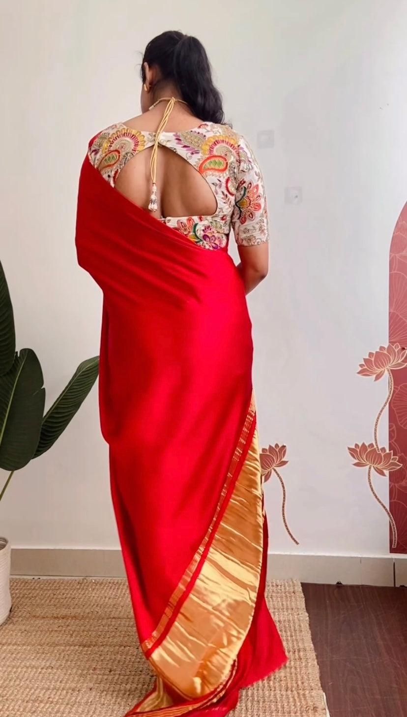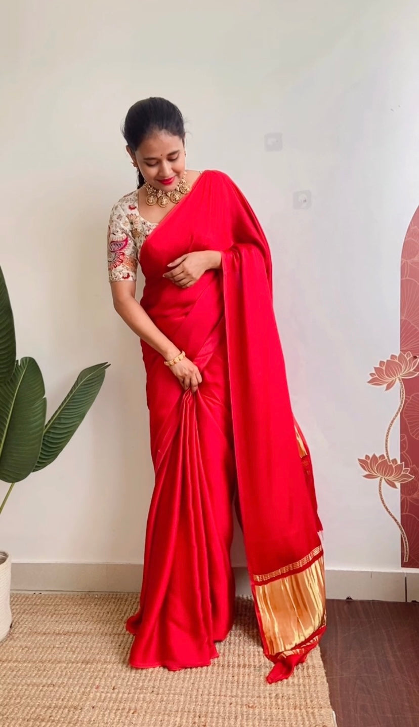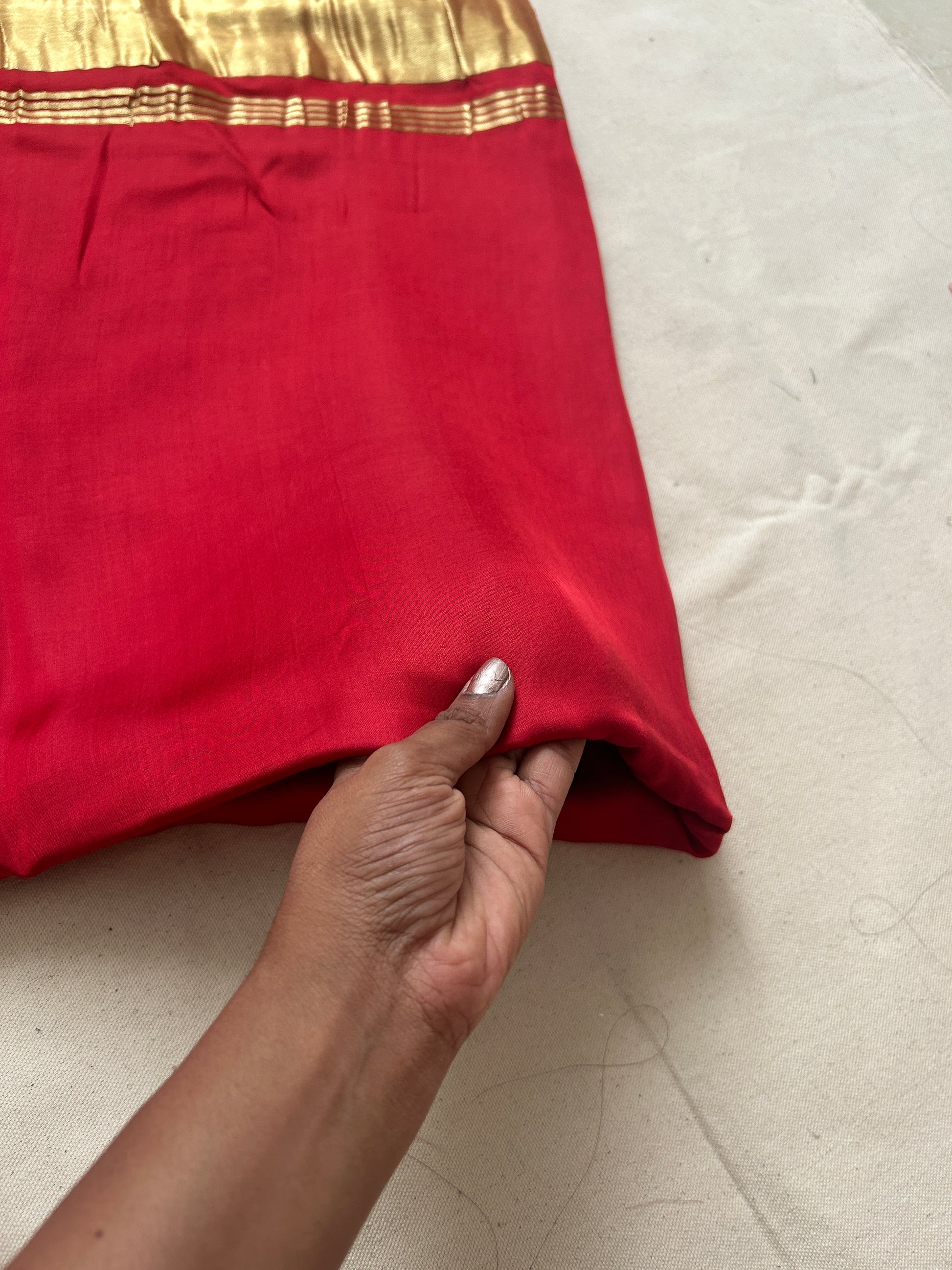 Red Pure modal silk saree with lagadi pallu with running blouse
