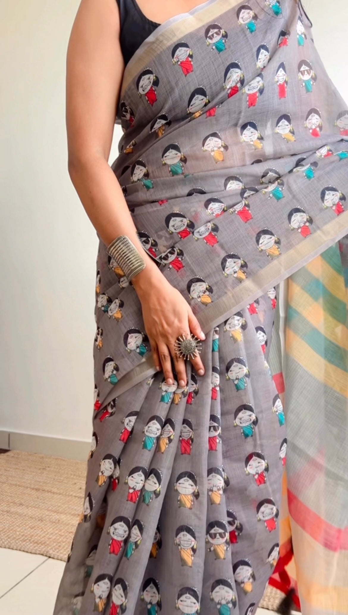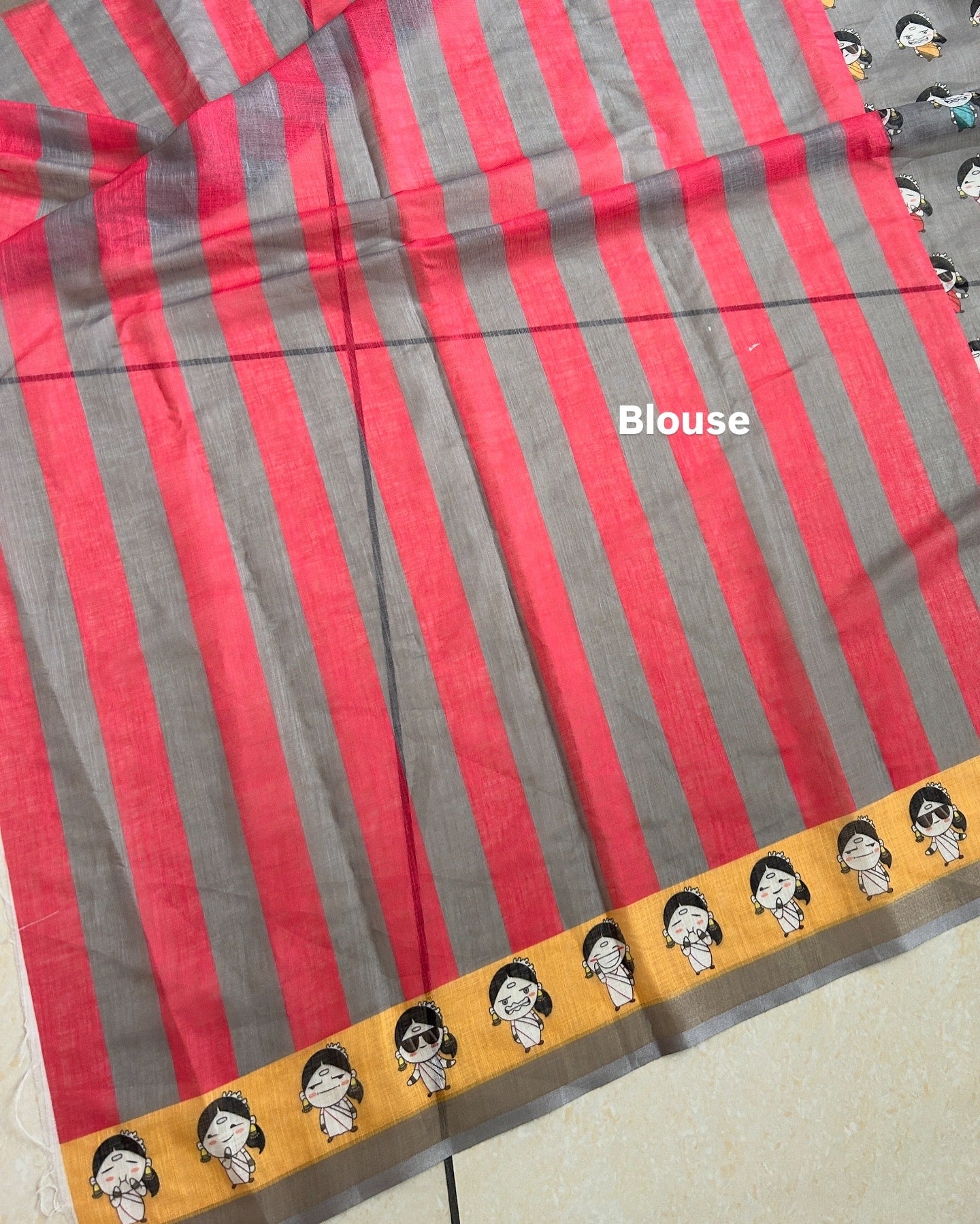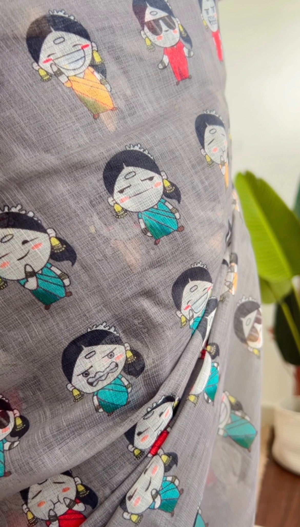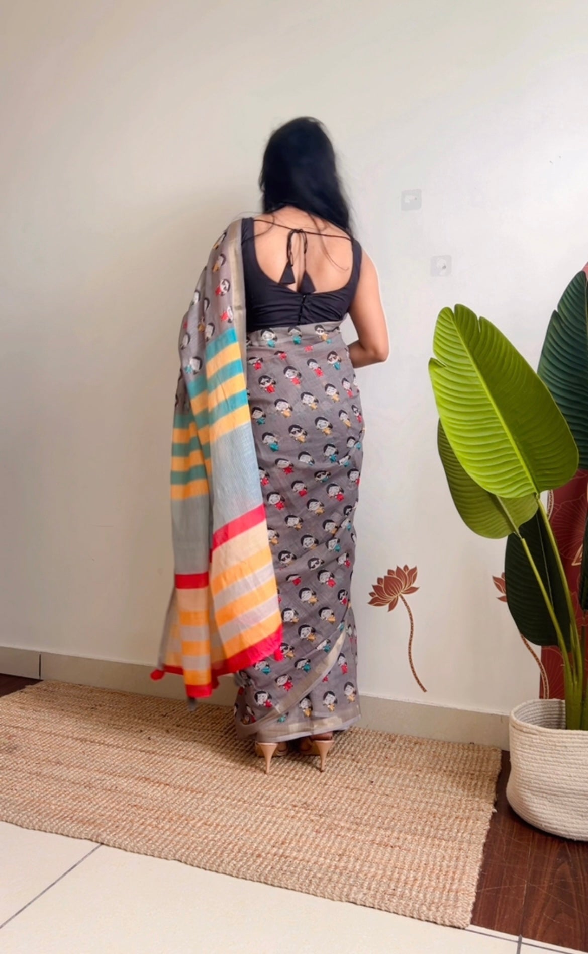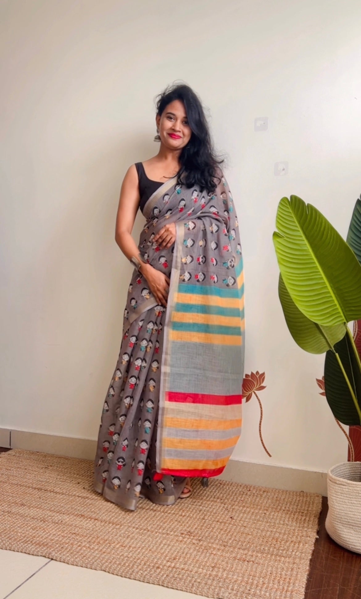 The LINEN SAREE woven in Linen by Linen fabric with Digital Print