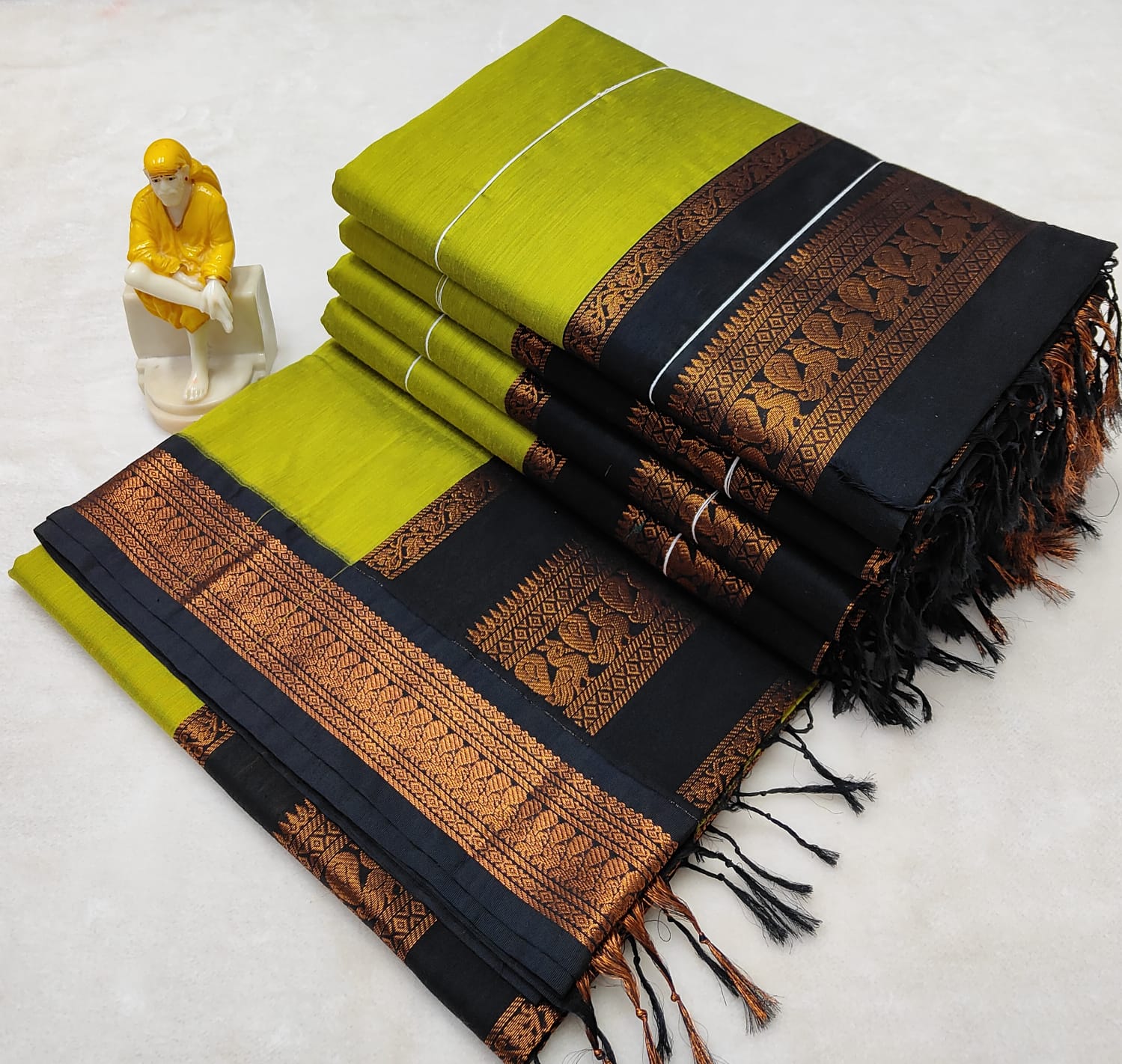 Yellow with Black Silk Cotton Saree